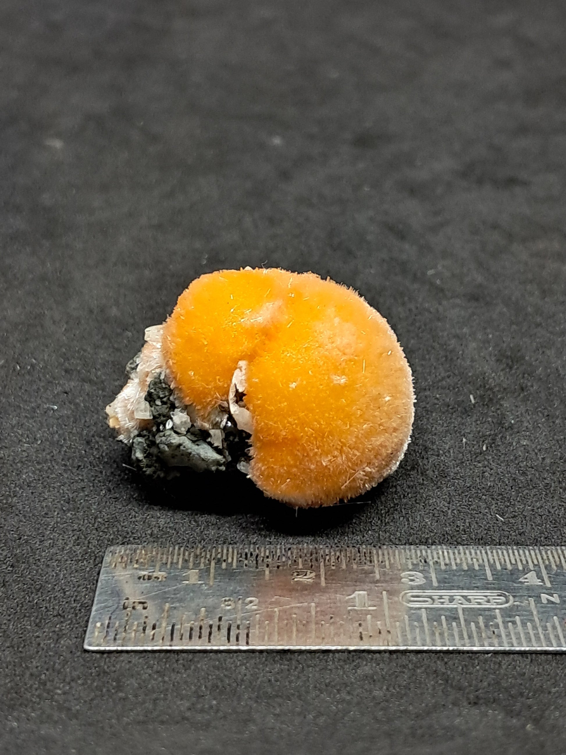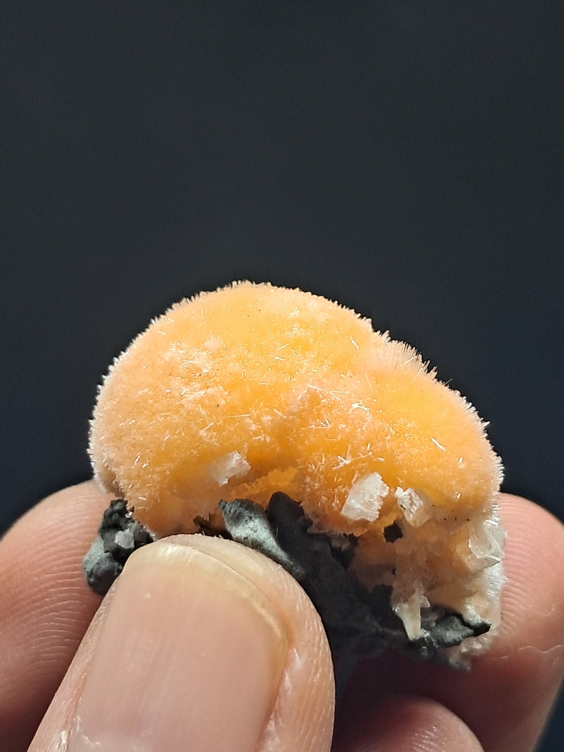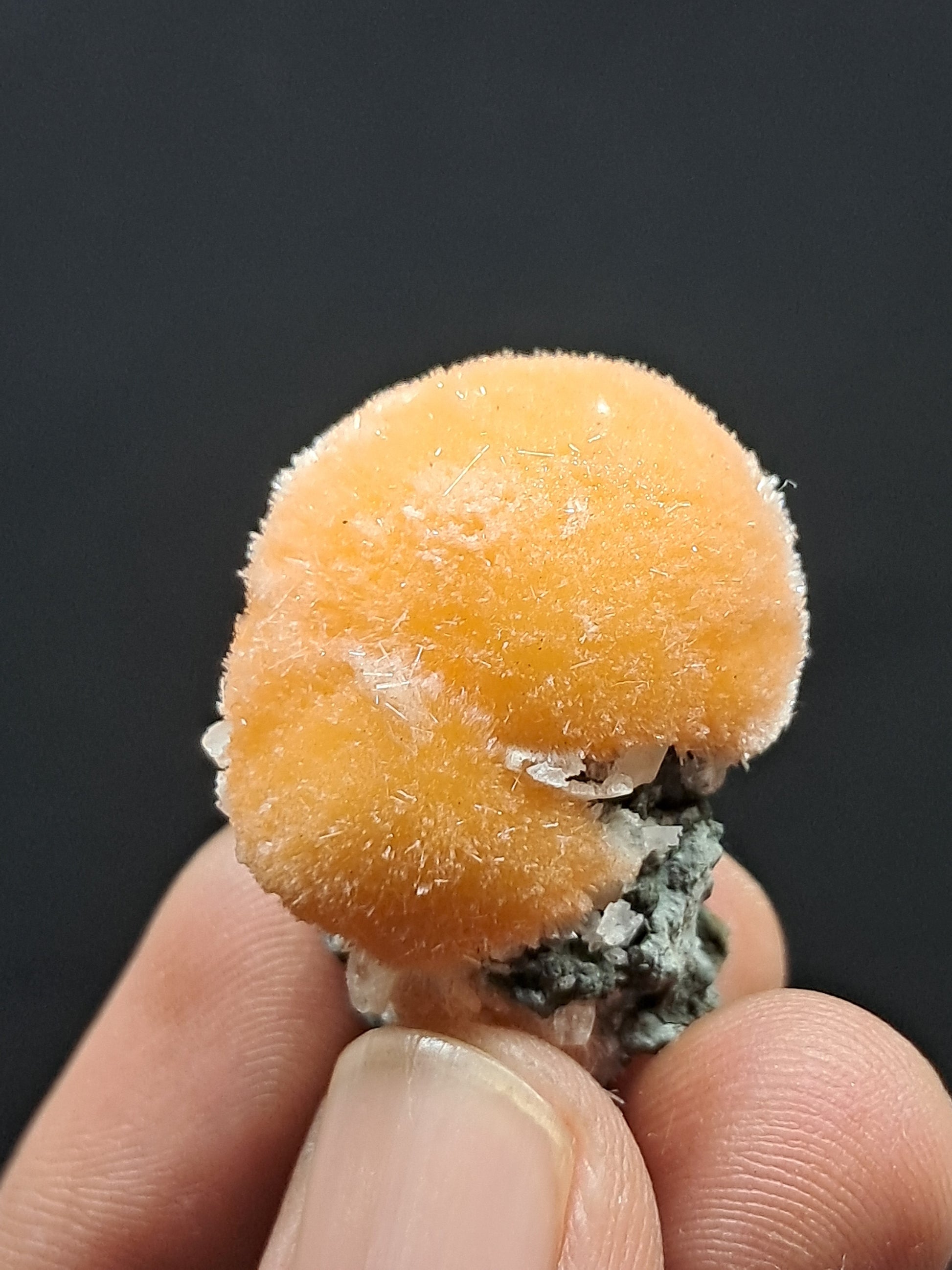Bola de buen tamaño de Thomsonita naranja que crece junto con finos cristales blancos de Mesolita.