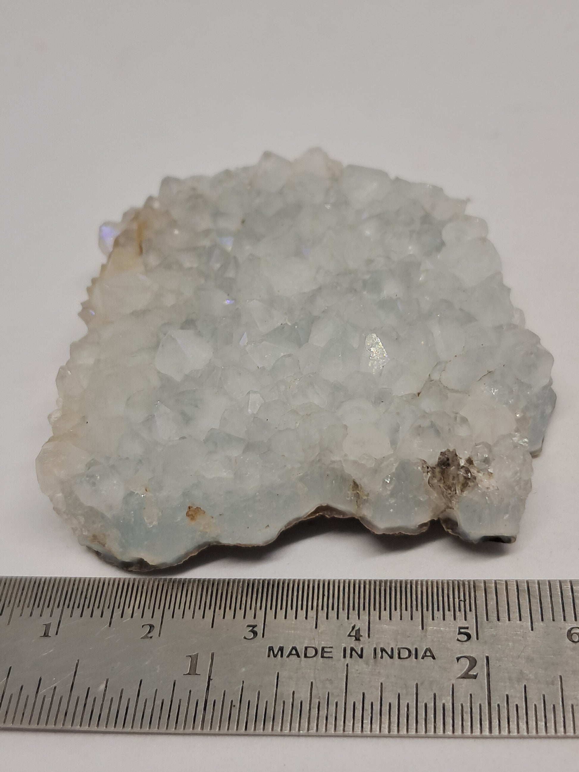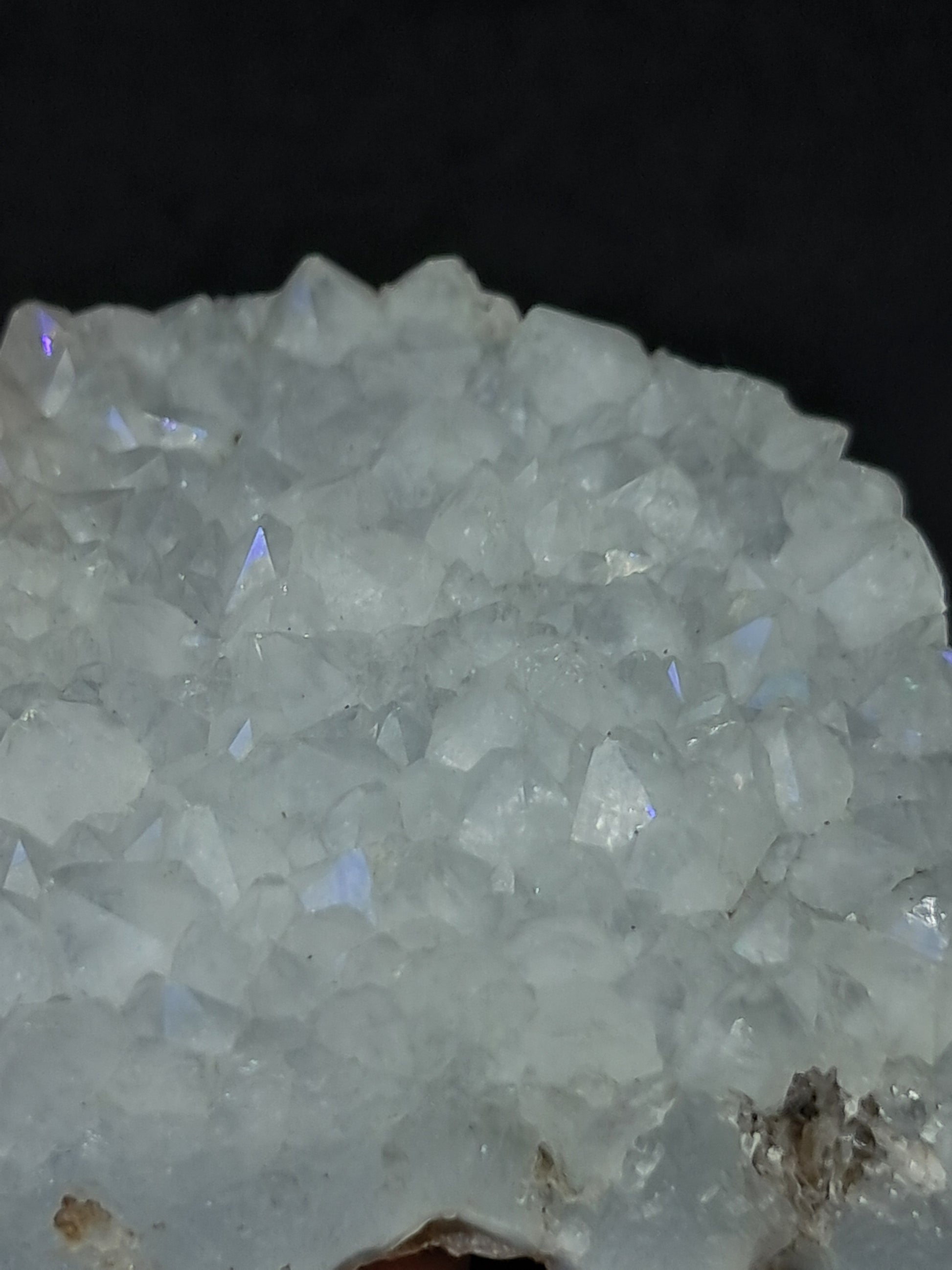 La iridiscencia de este ejemplar es sutil, pero se puede apreciar en muchos puntos. Presenta un hermoso color azul-violeta.