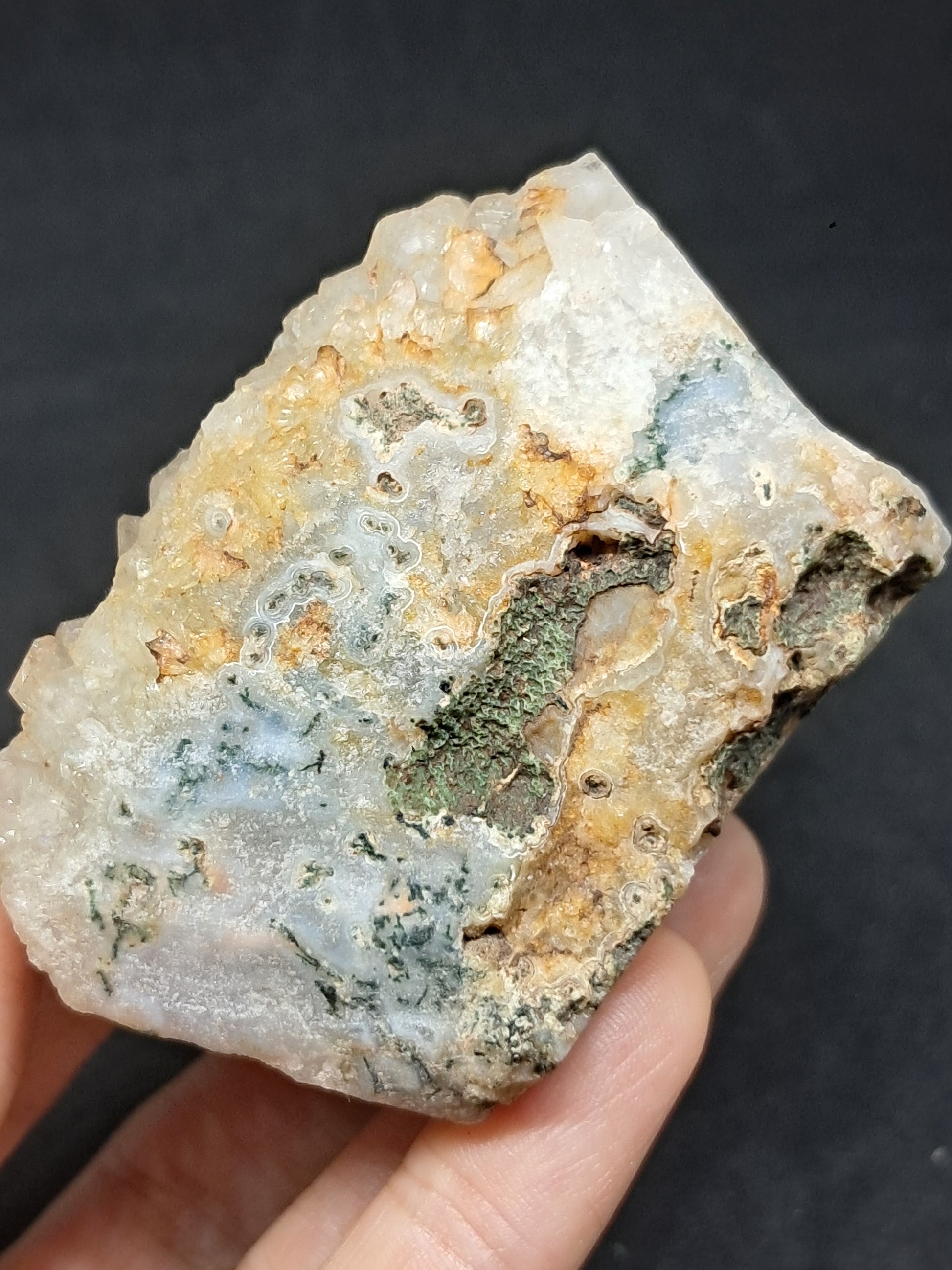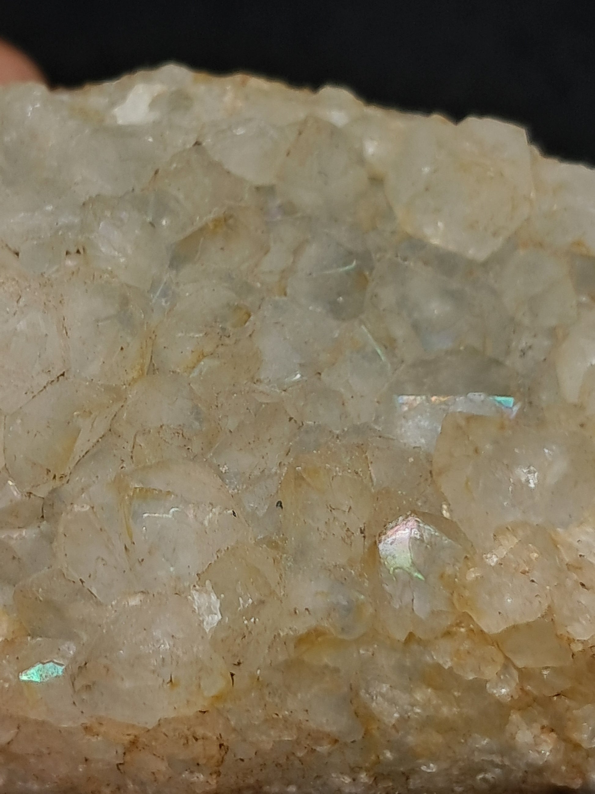 La iridiscencia en este ejemplar es buena, se pueden ver todos los colores del arco iris en muchos puntos, especialmente el verde y el rosa.