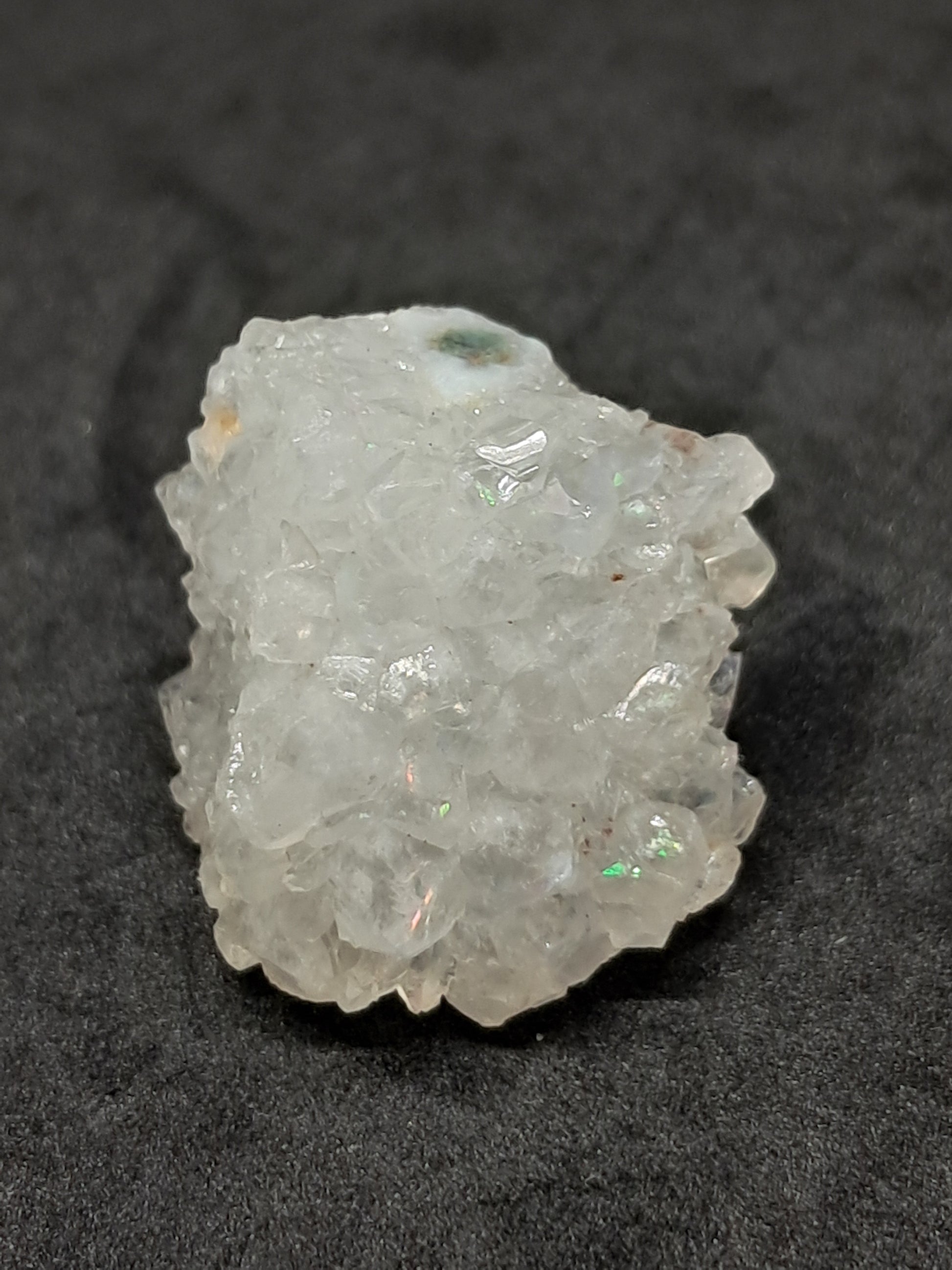 La iridiscencia de este ejemplar muestra principalmente los colores rosa y verde.