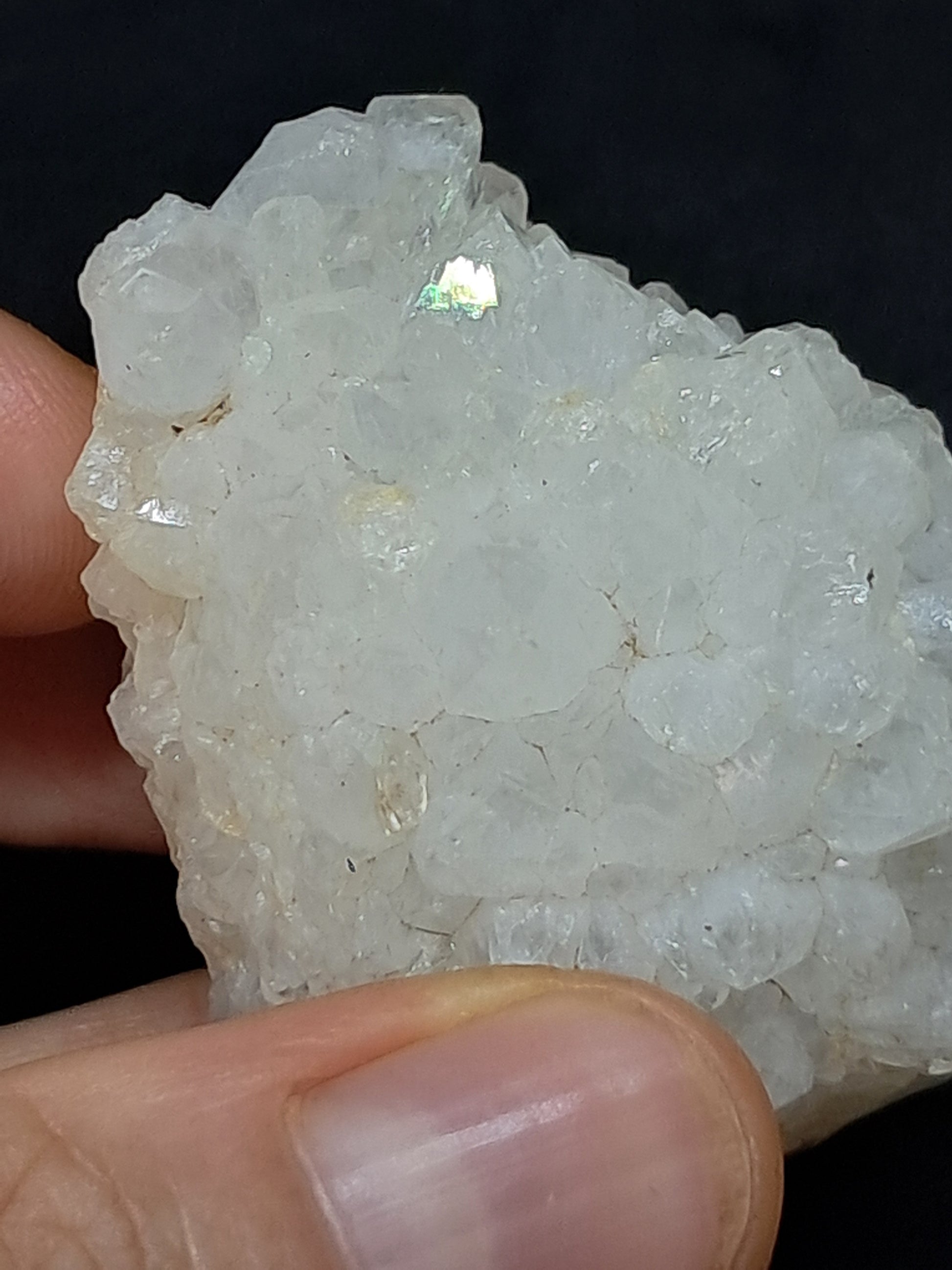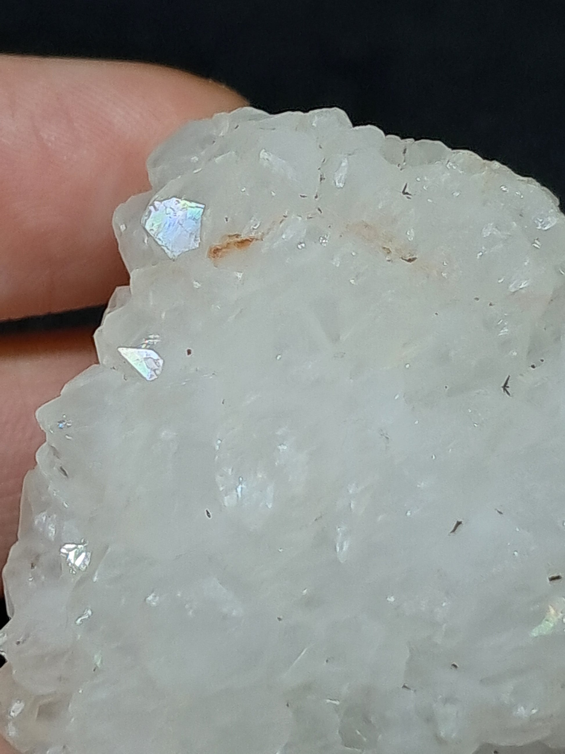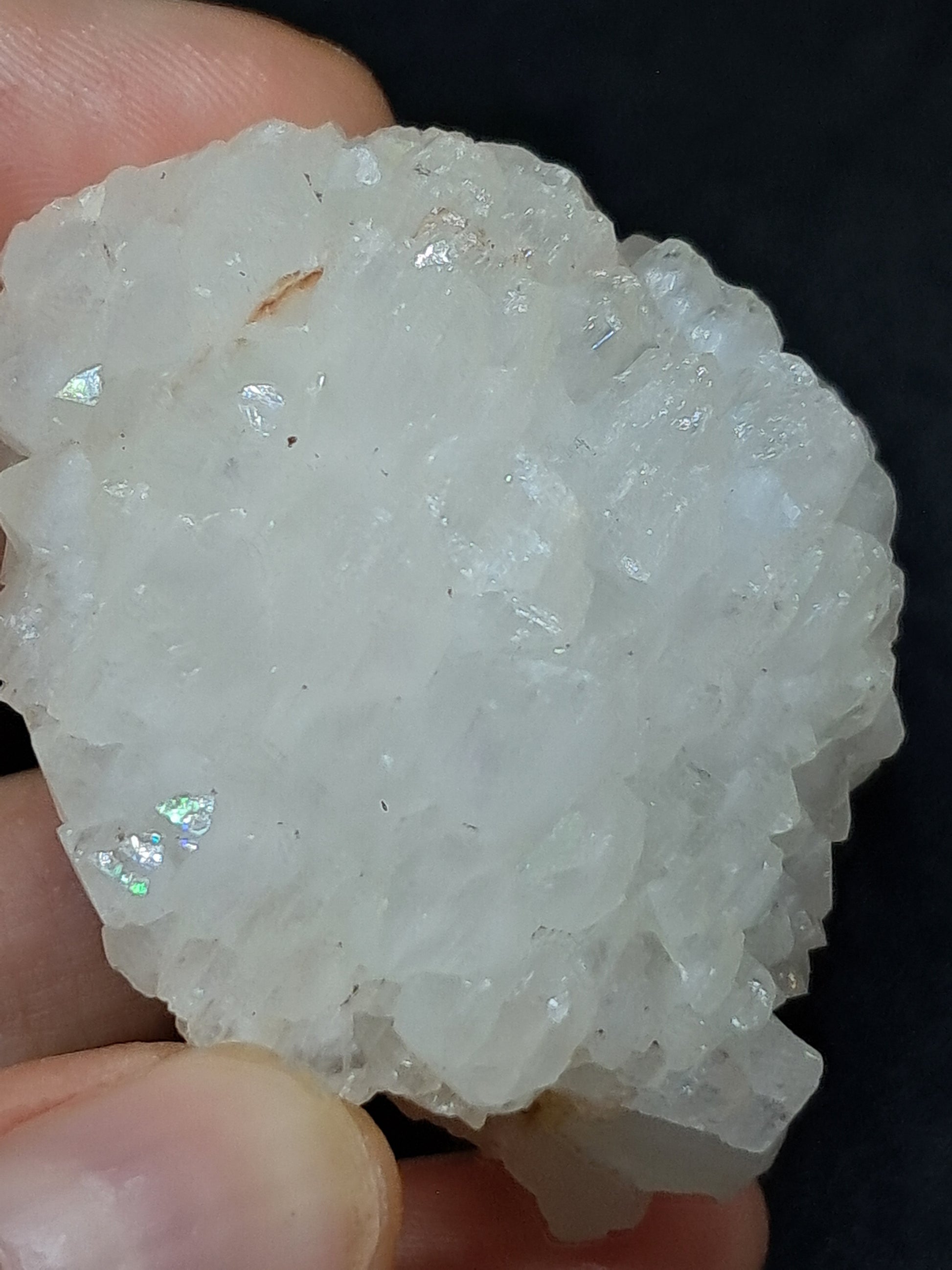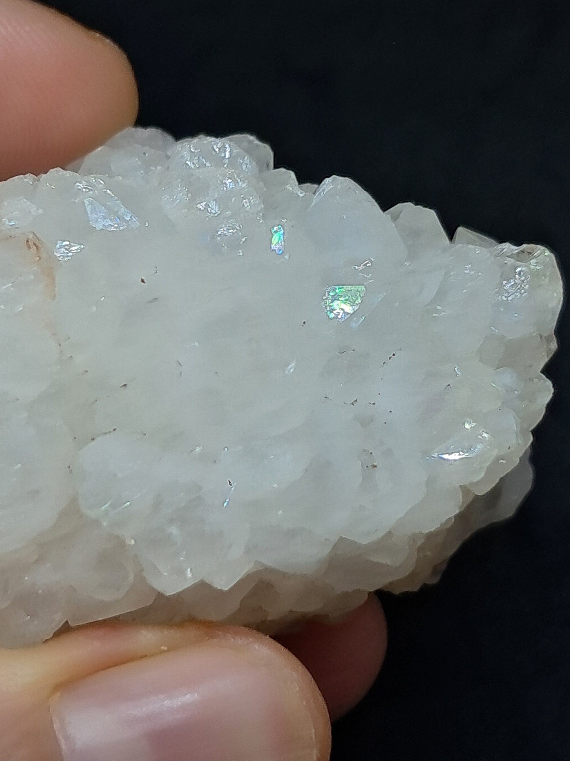 La iridiscencia en este ejemplar es buena, se pueden ver colores del arco iris en algunos puntos, especialmente azul claro y verde.