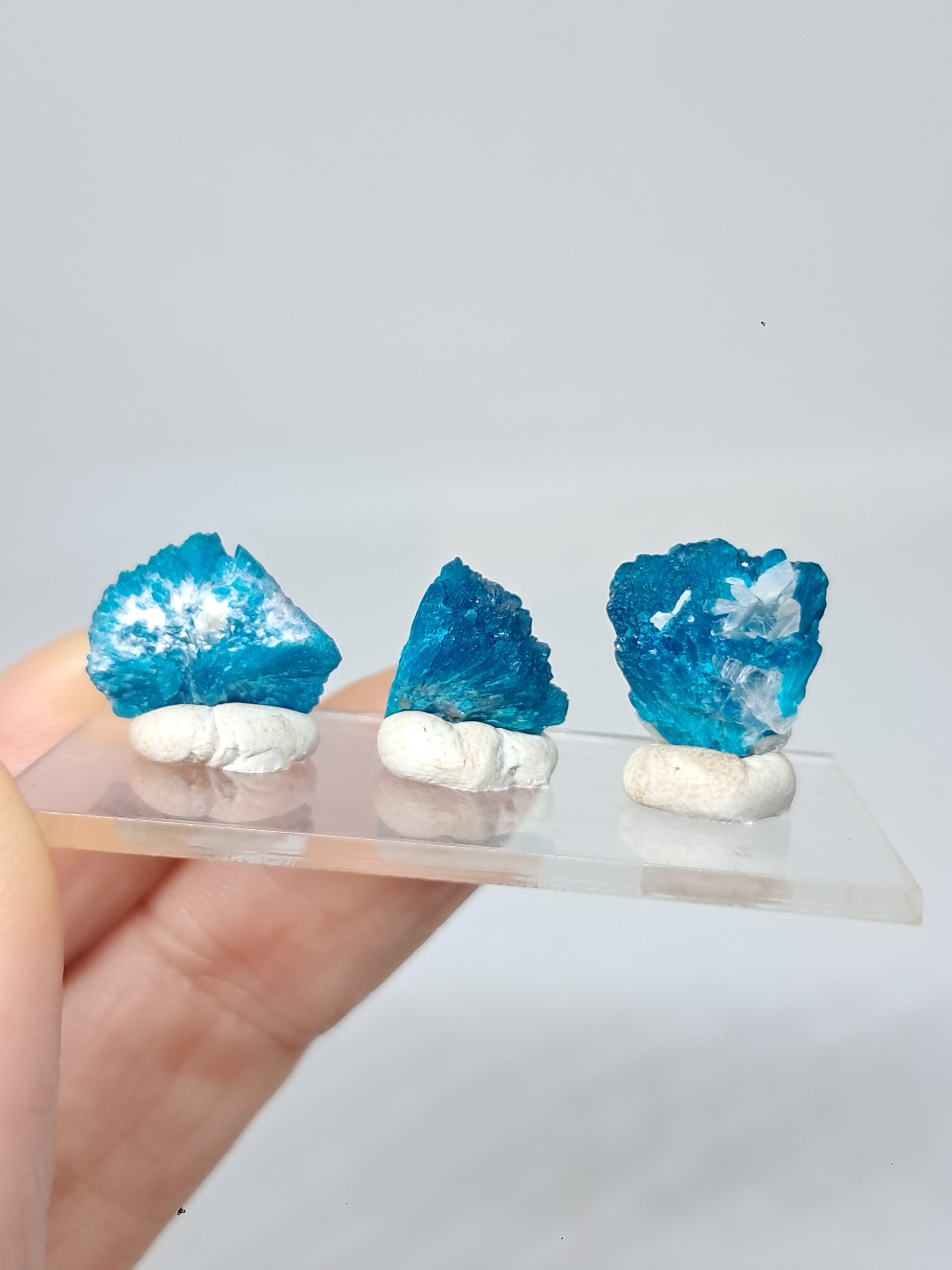 Conjunto de 3 cavansitas (wagholi) en bruto | Cristal natural | Ejemplar mineral raro n.° CV43