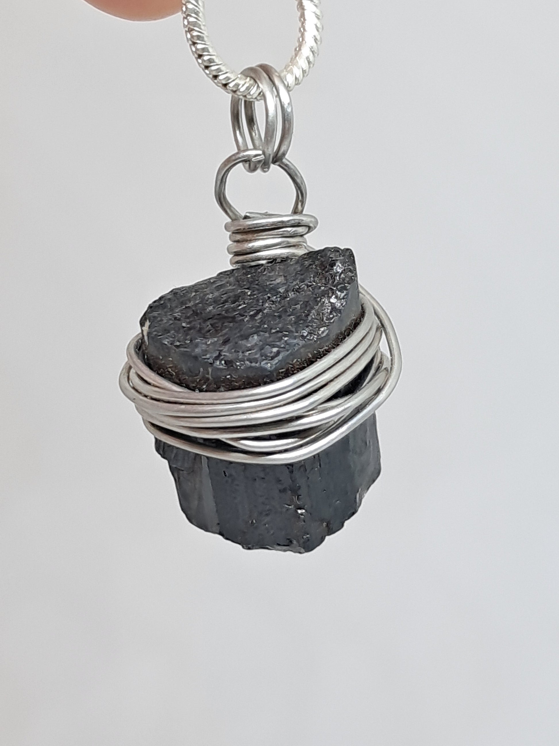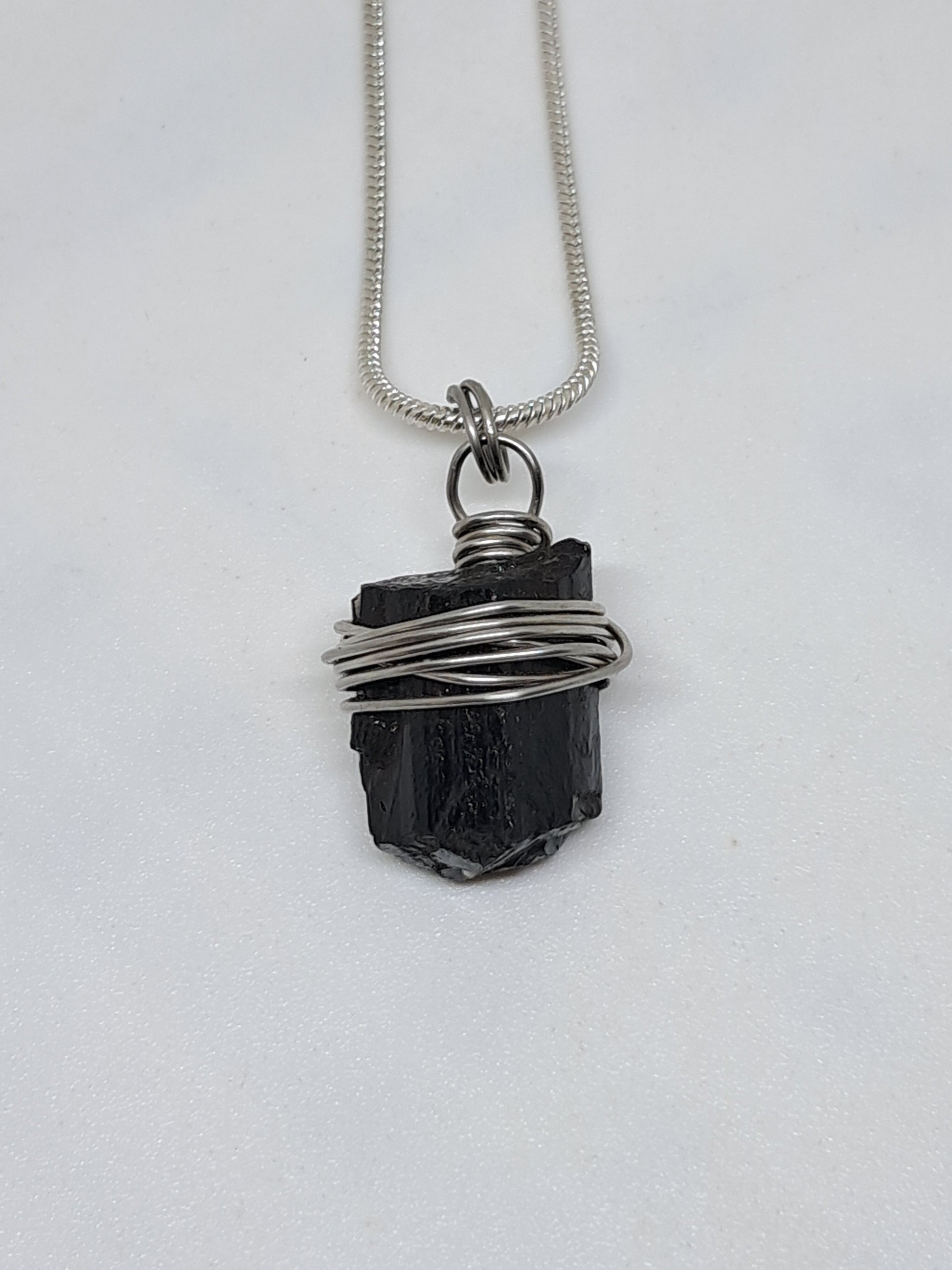 Black Tourmaline Wrapped in Stainless Steel | Handmade Pendant | Handcrafted Jewelry | Necklace | Unisex #JL31