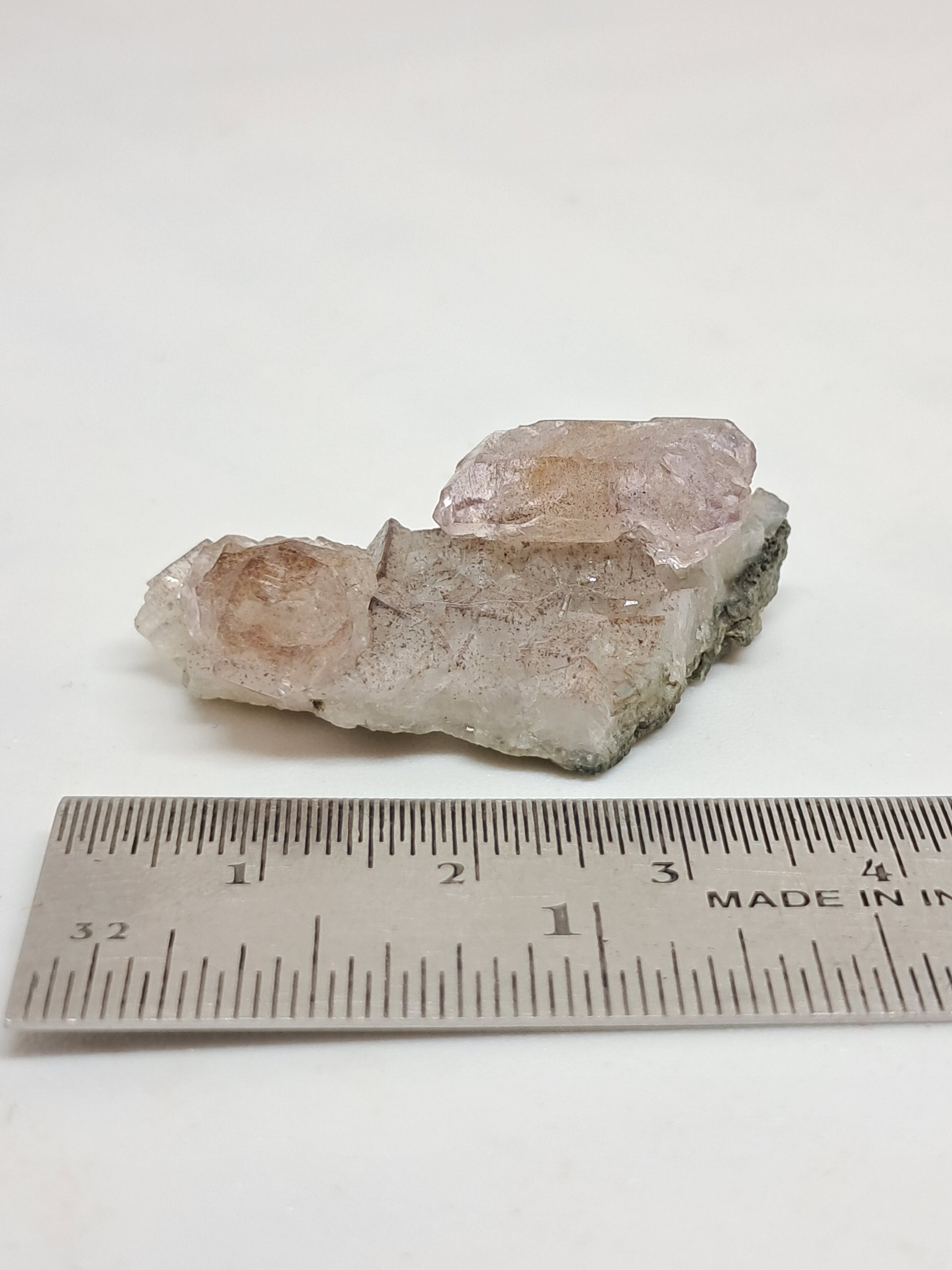 Beautiful scepters with Honeycomb terminations and interesting inclusions. The Scepters have formed on matrix made of cubical Feldspar showing Hematite spots.