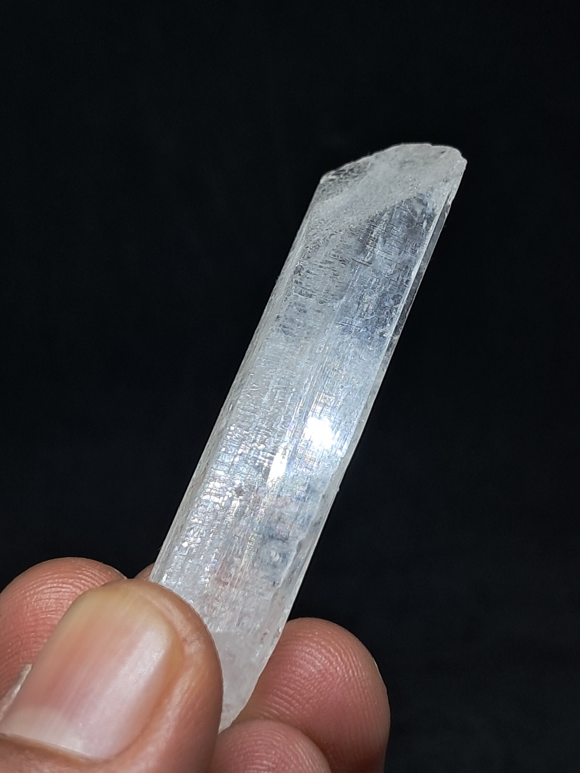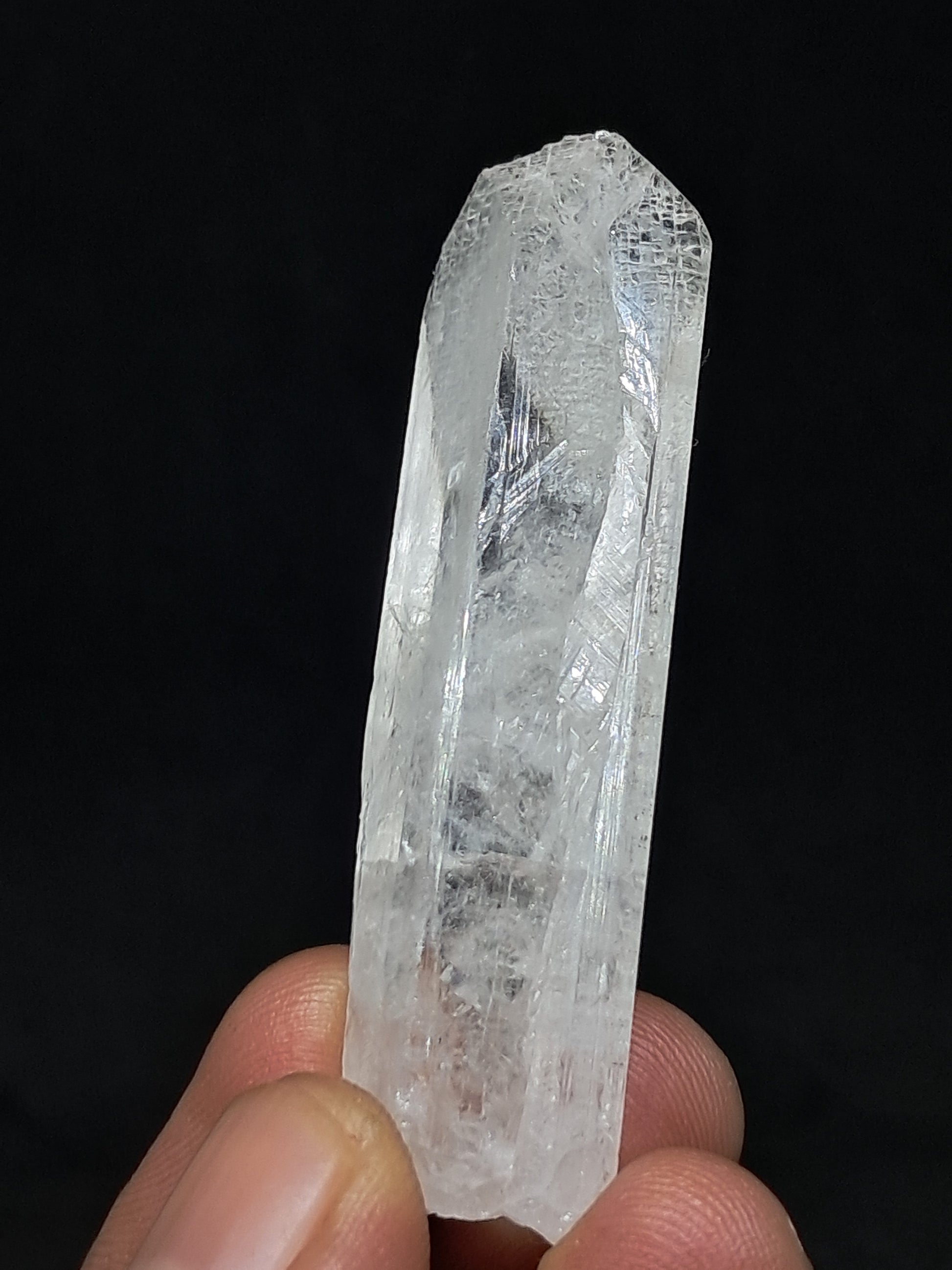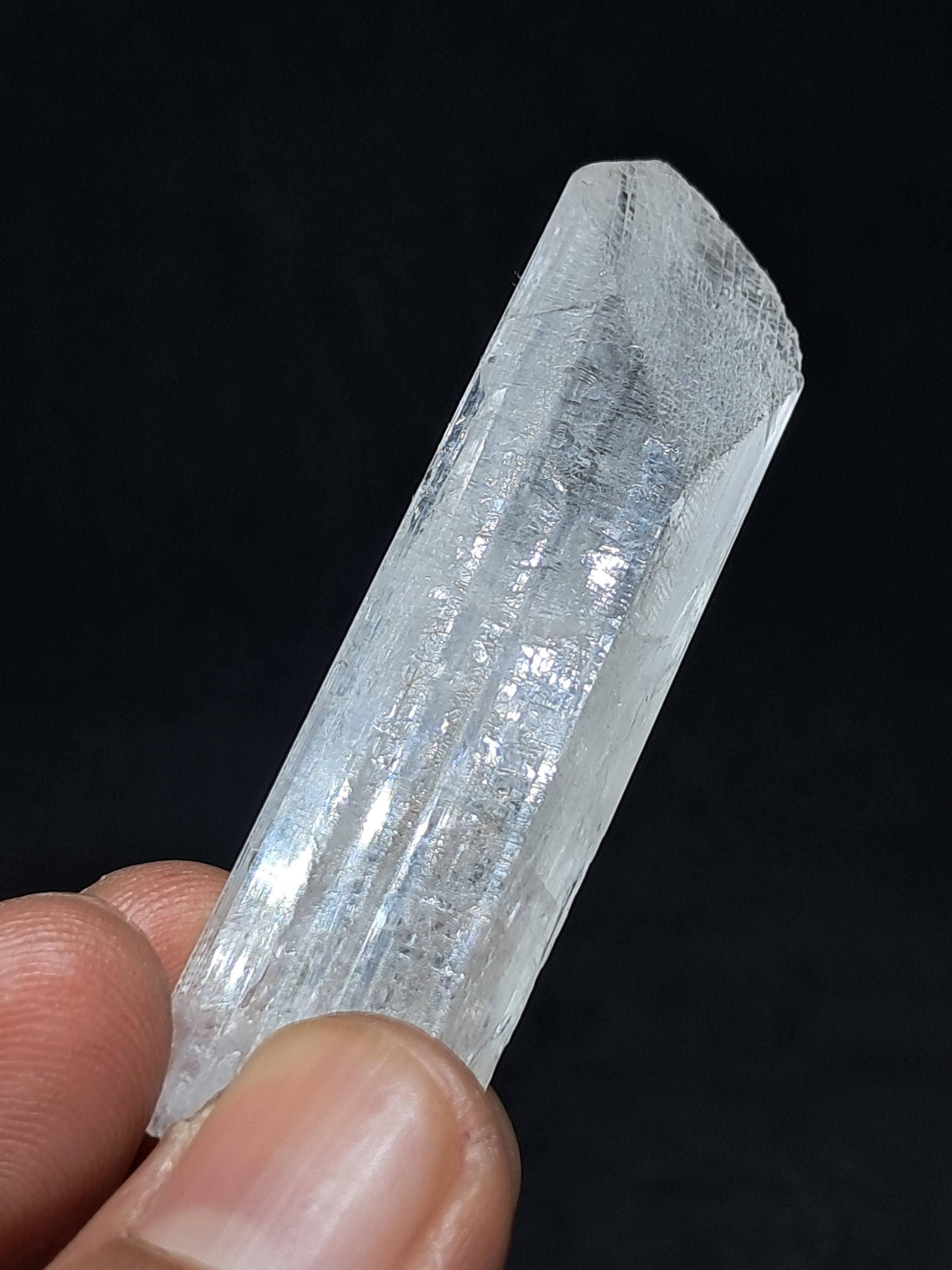 Beautiful large crystal of transparent Danburite showing beautiful termination and growth lines. At certain angles the crystal shows subtle pinkish hue.