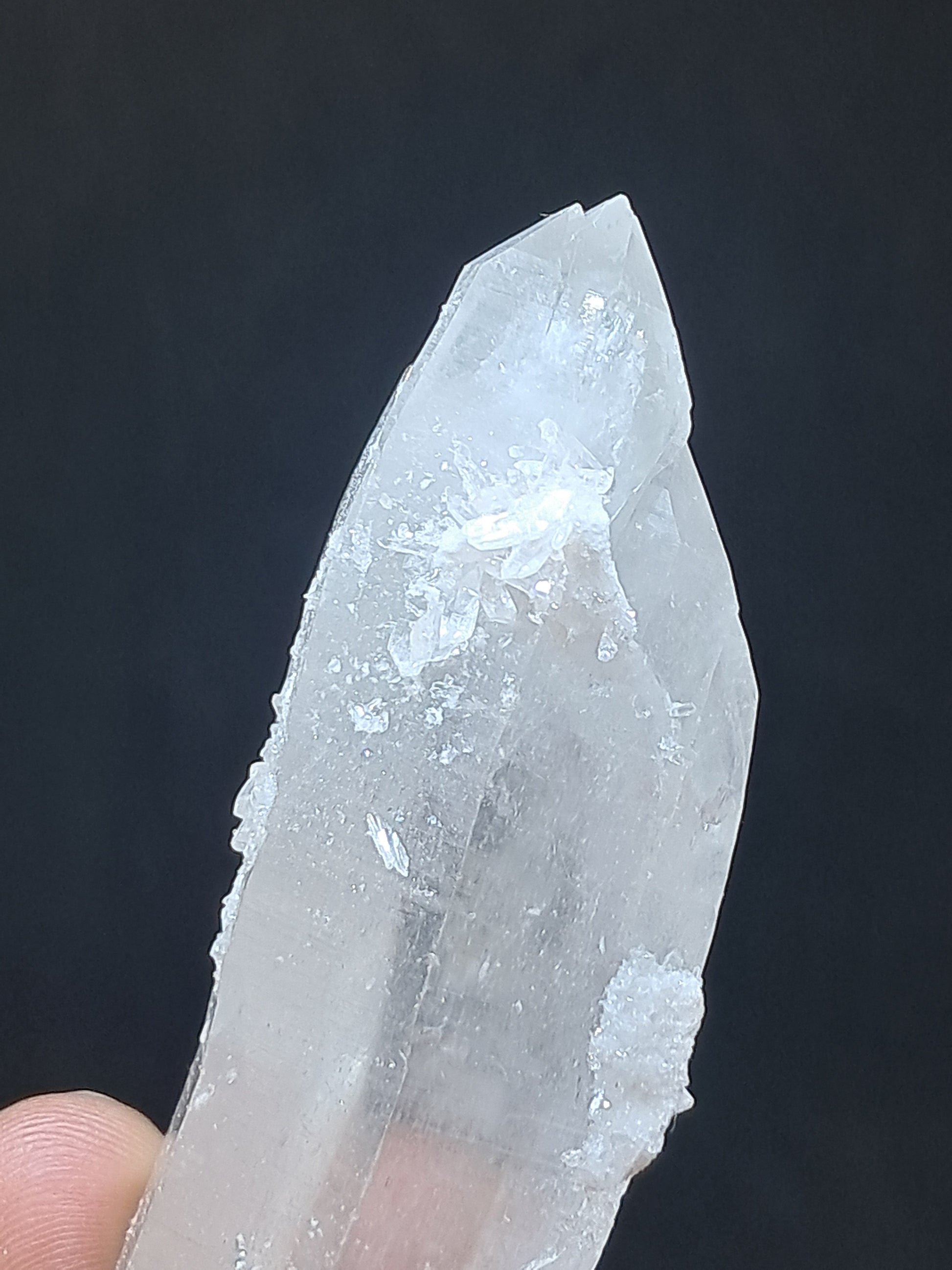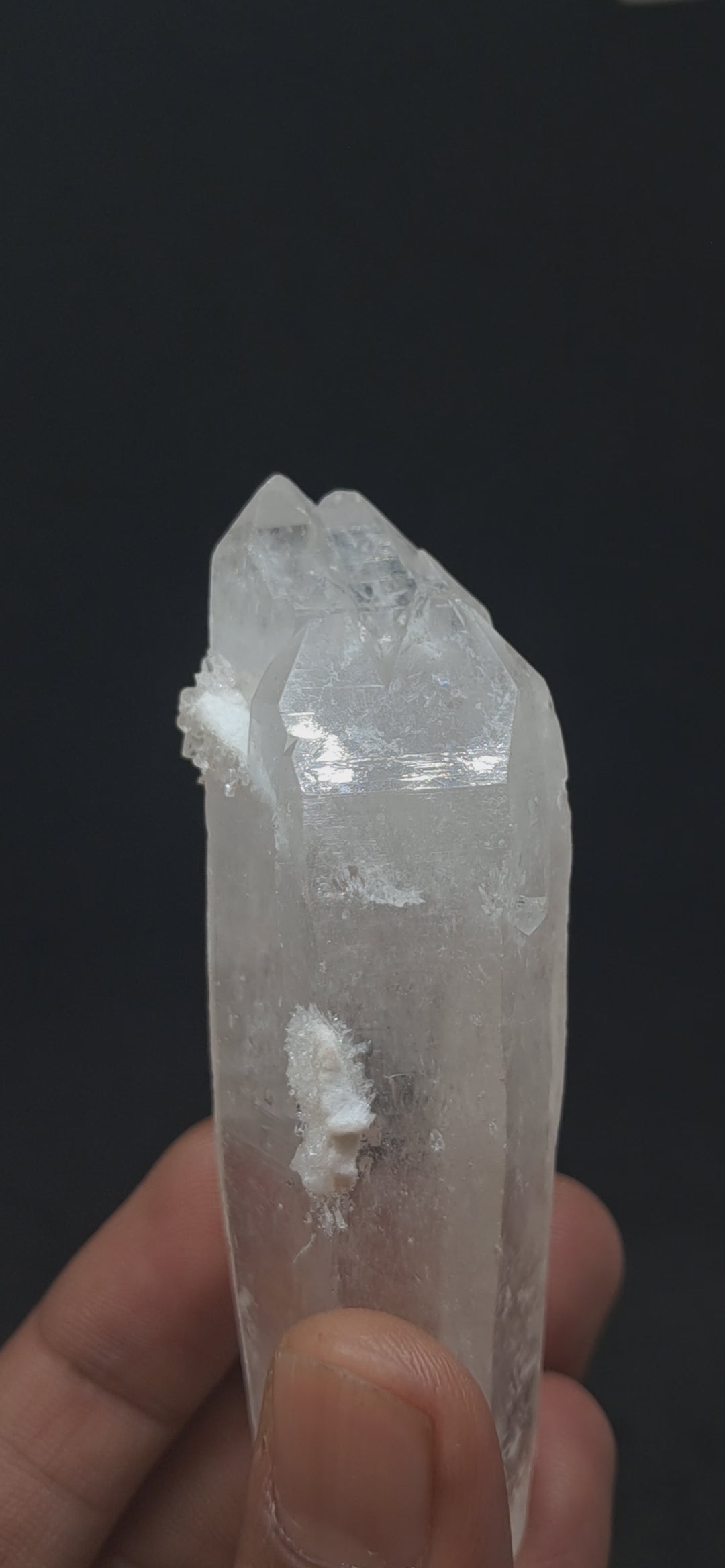 Beautiful point of biterminated Quartz. One end terminates into a single crystal with flat termination while other ends into split terminations with mulitple points, being self-healed.