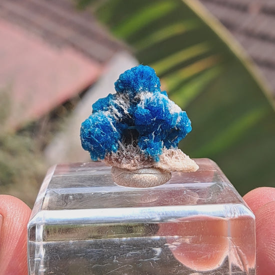 Perfect Cavansite Spheres on Fibrous Stilbite (Wagholi) Rough Stone | Natural Crystal | Rare Mineral Specimen #CV59