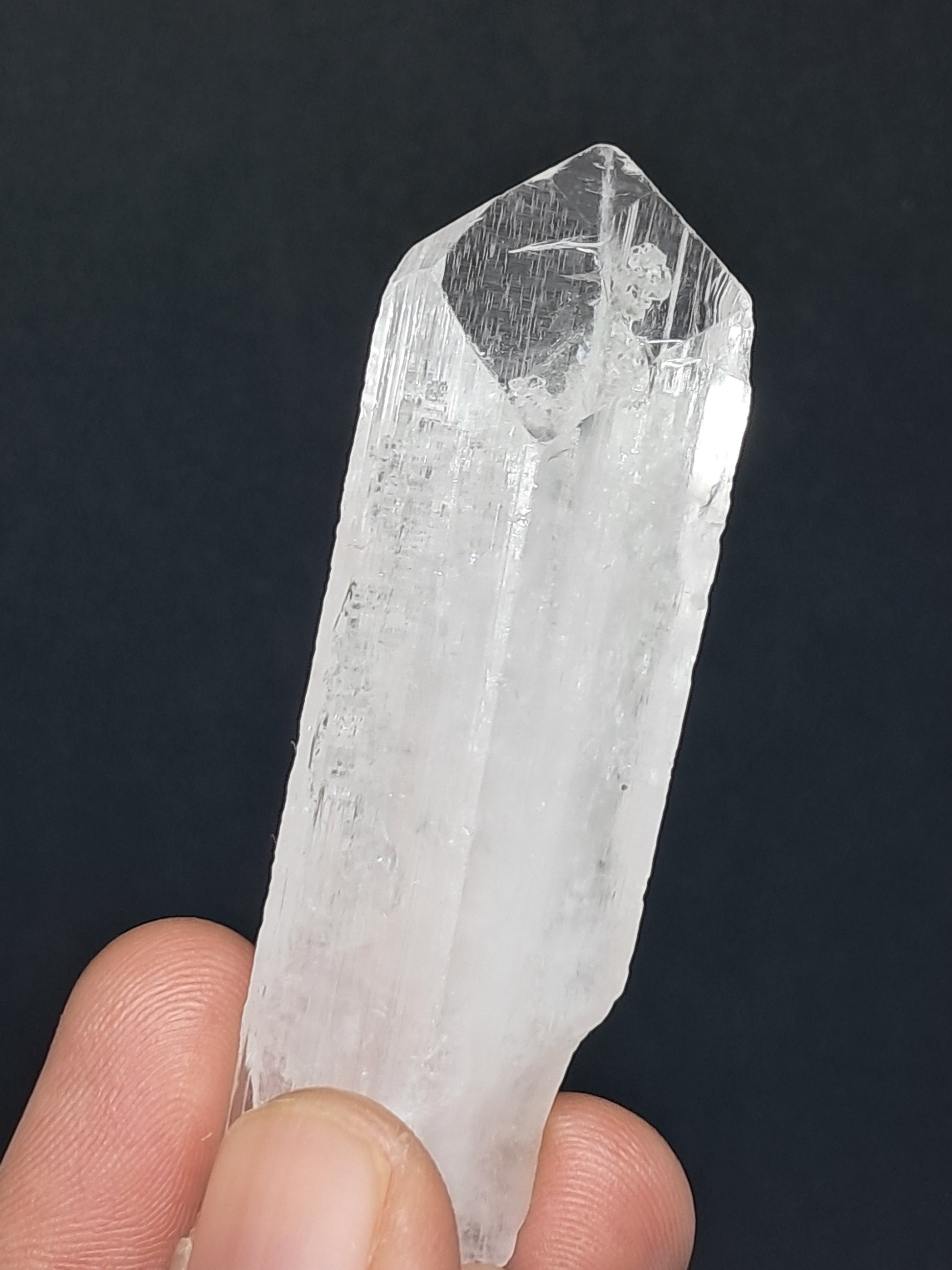 Beautiful large crystal of transparent Danburite showing beautiful termination and growth lines. One side also shows deposition of tiny drussy crystals.