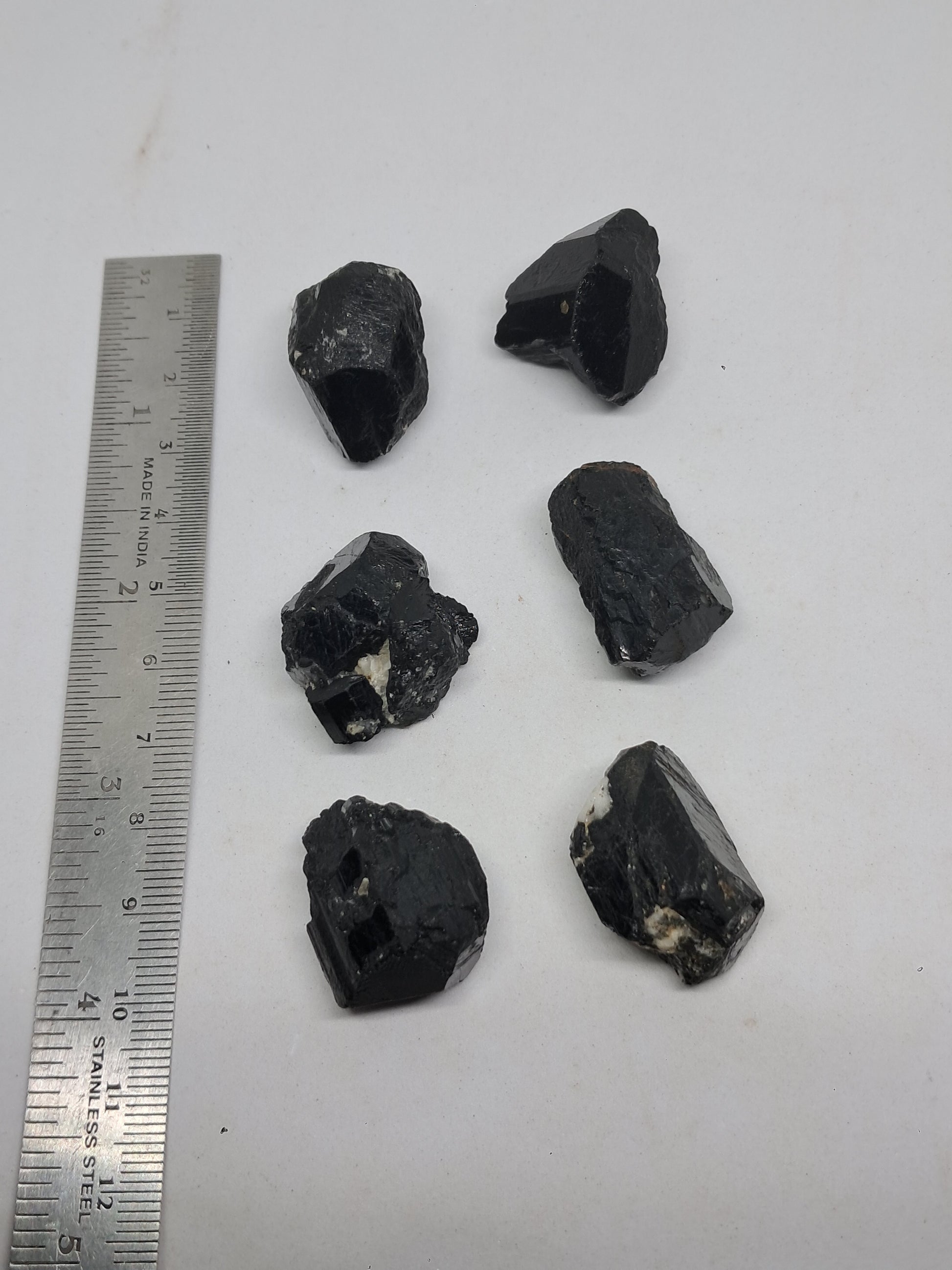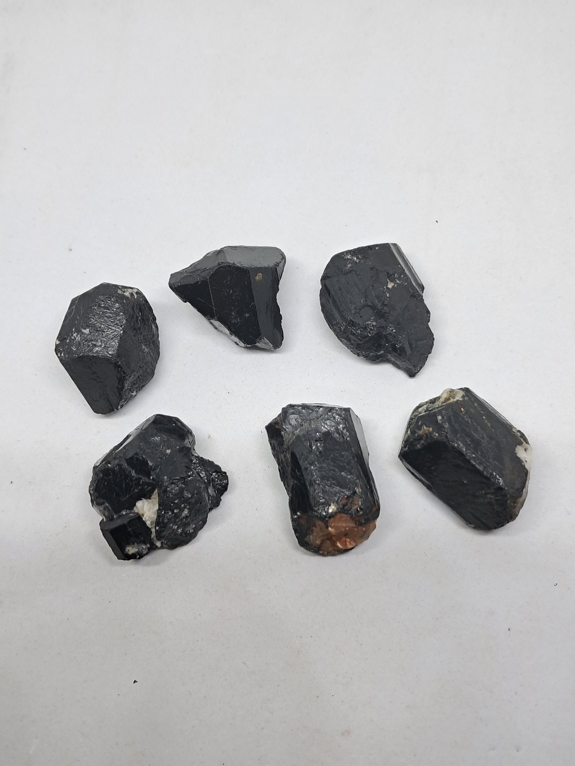 Rough crystals of Black Tourmaline. Some may have natural termination on one side.