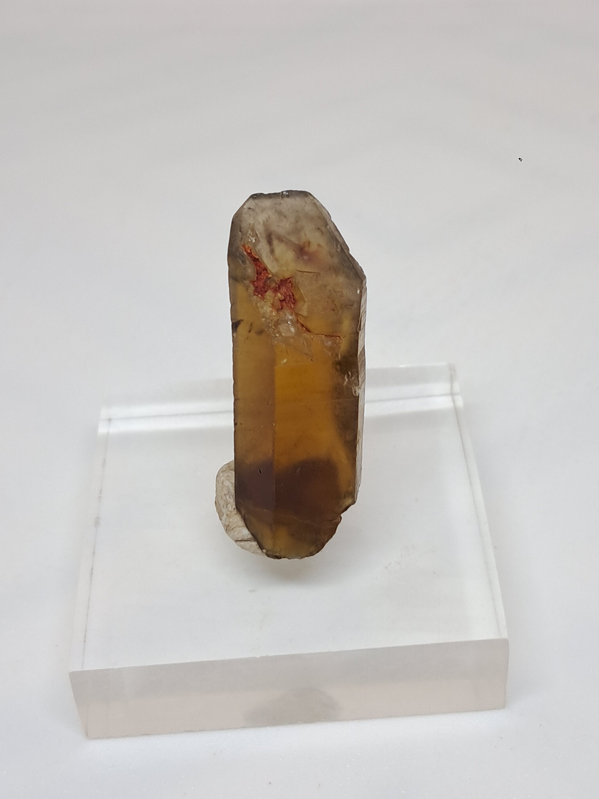This natural citrine crystal (non heat-treated) displays warm honey-gold tones with subtle smoky shades. It has some iron-rich inclusions on its tip.