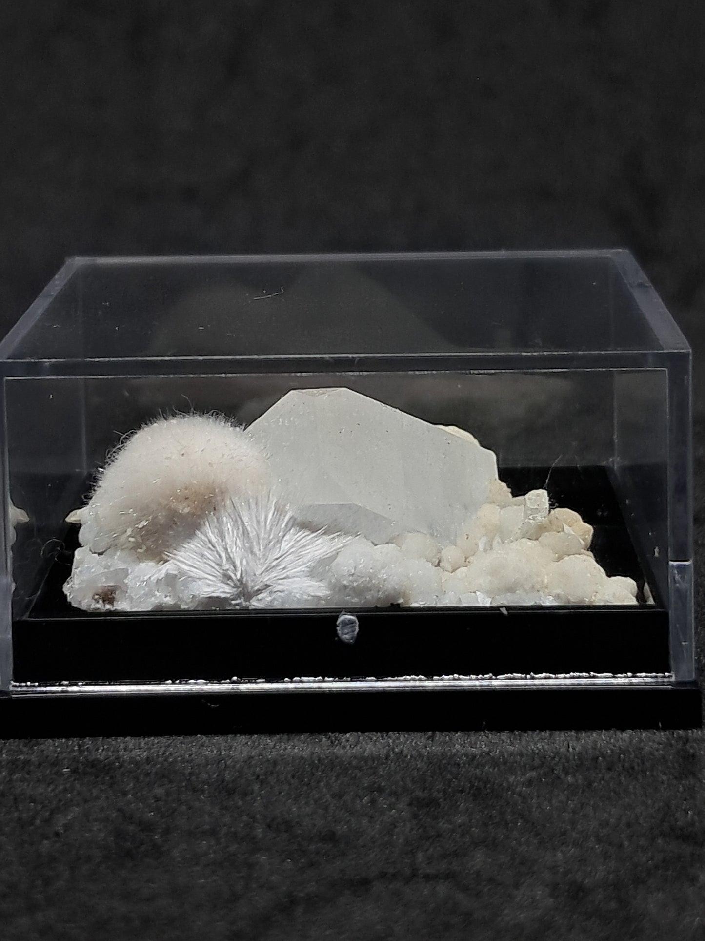 This is a beautiful specimen of Okenite and Apophyllite on Gyrolite matrix. The Apophyllite crystals is very beautifully formed.