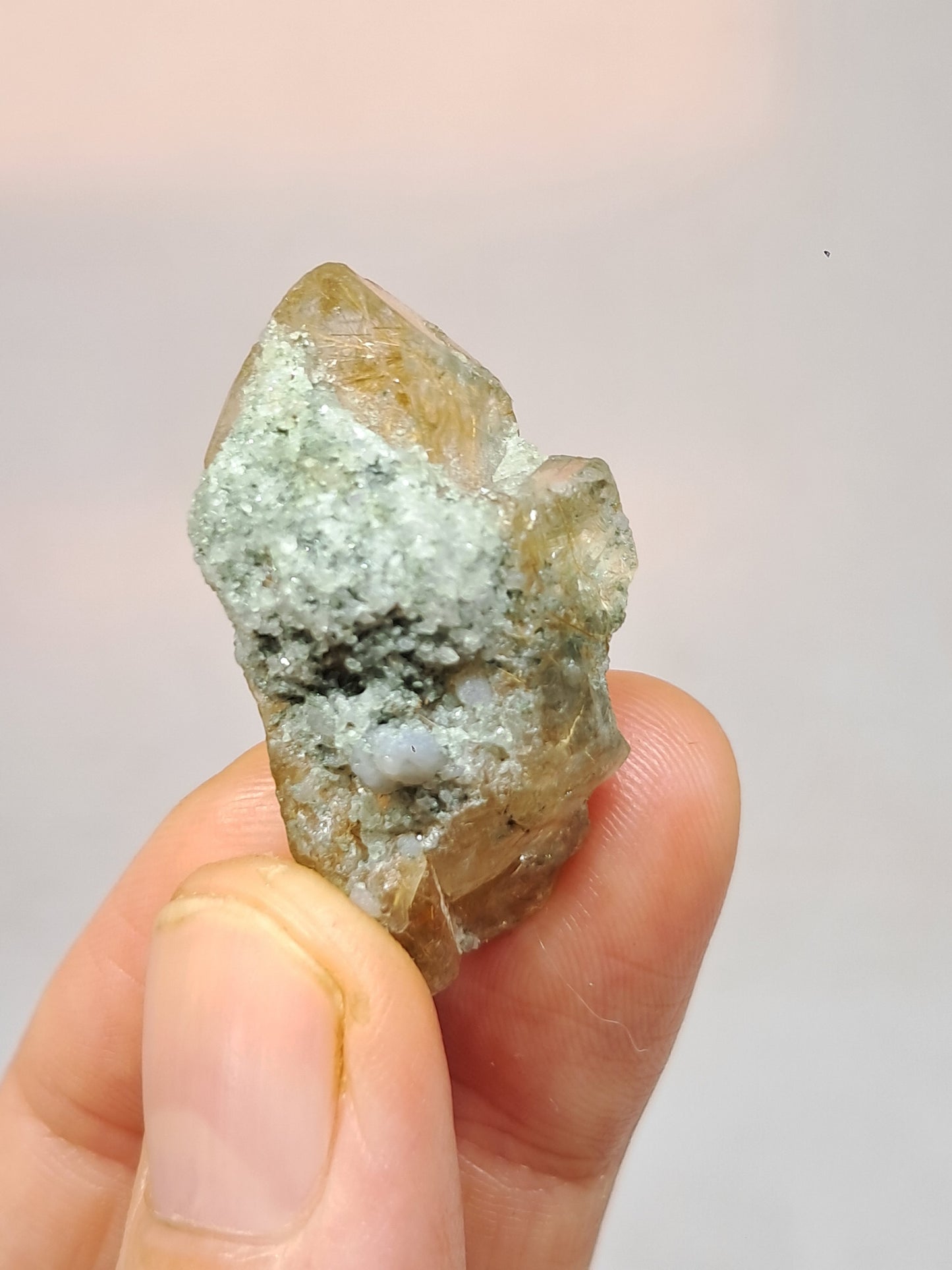 Quartz w/ Chlorite and Golden Rutile Inclusions (Kullu) Rough Stone | Natural Crystal Point | Mineral Specimen #CH42