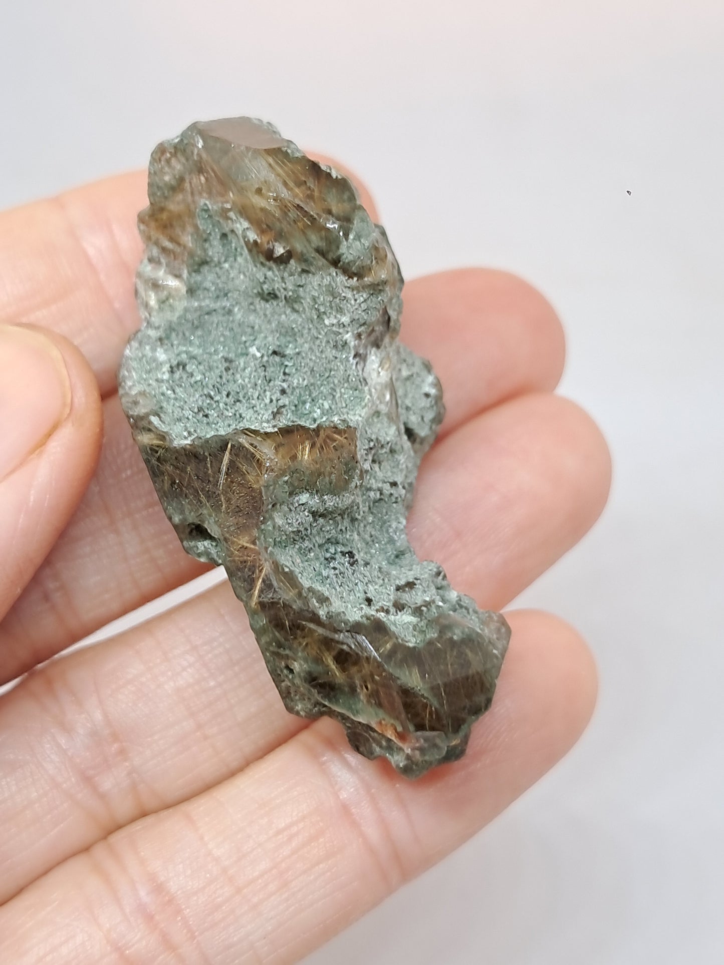 Quartz w/ Chlorite and Golden Rutile Inclusions (Kullu) Rough Stone | Natural Crystal Point | Mineral Specimen #CH43