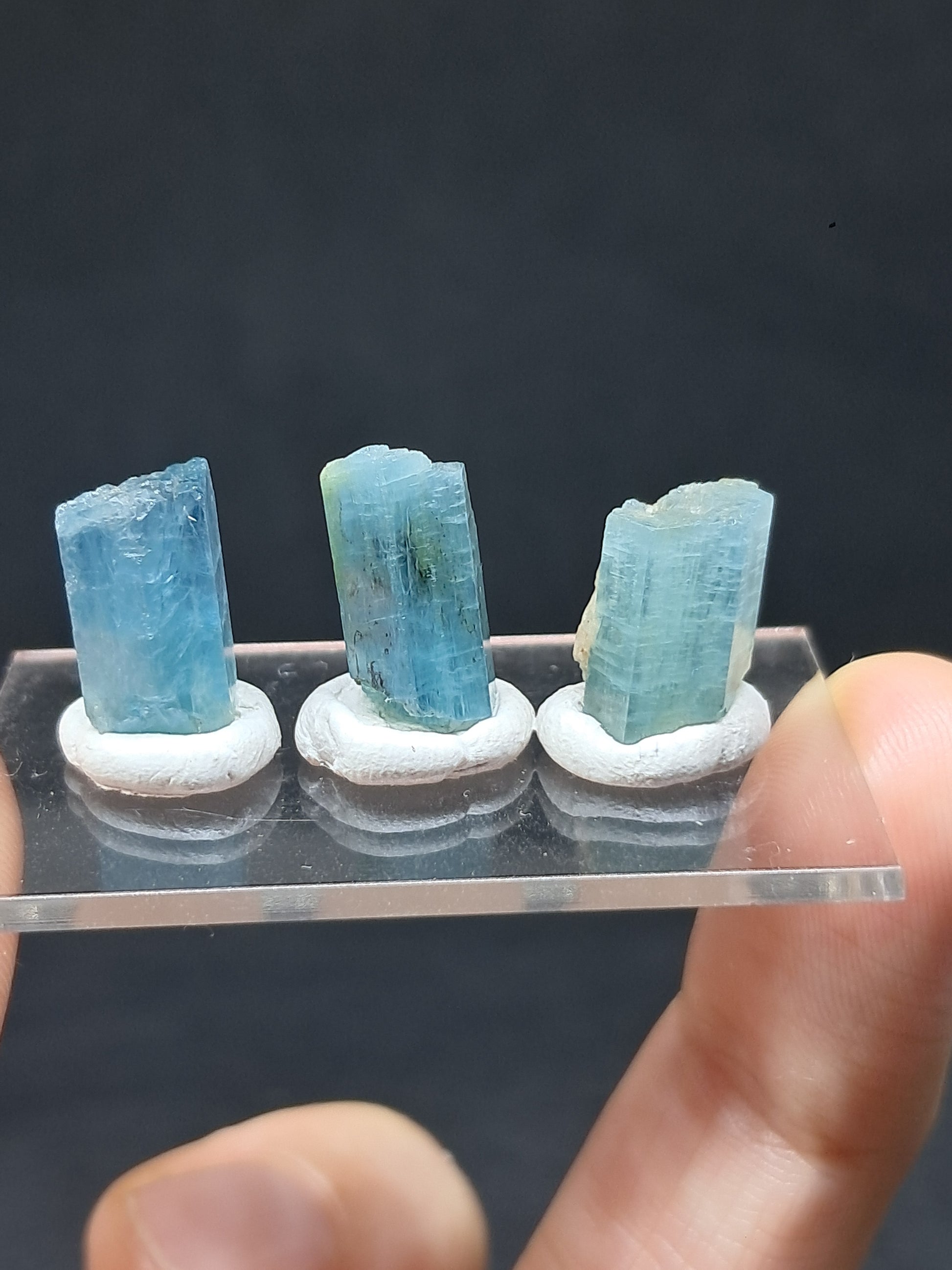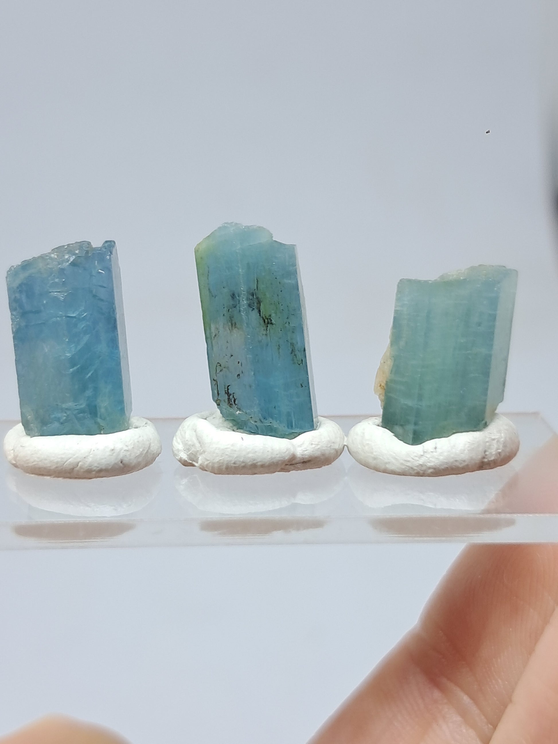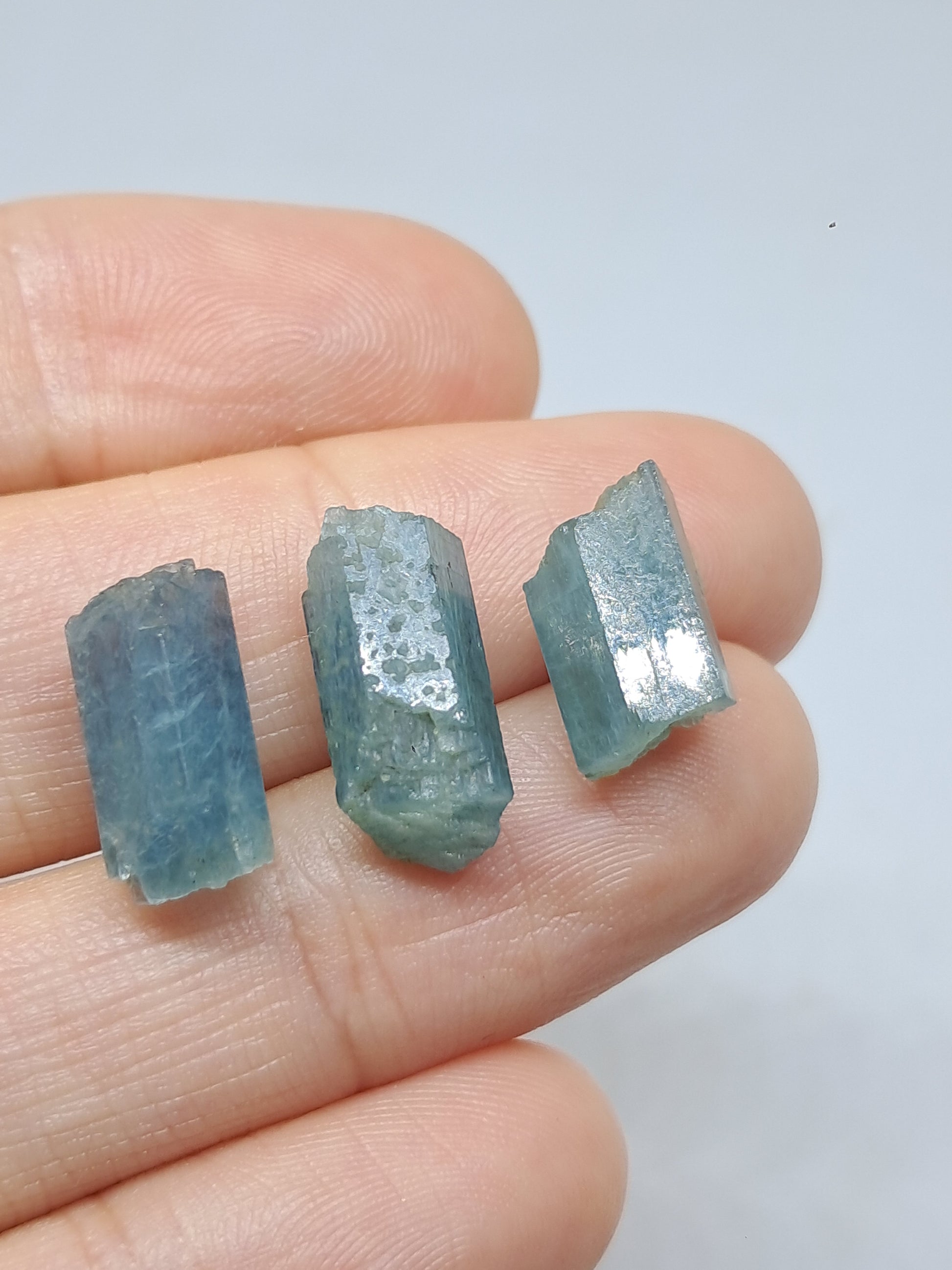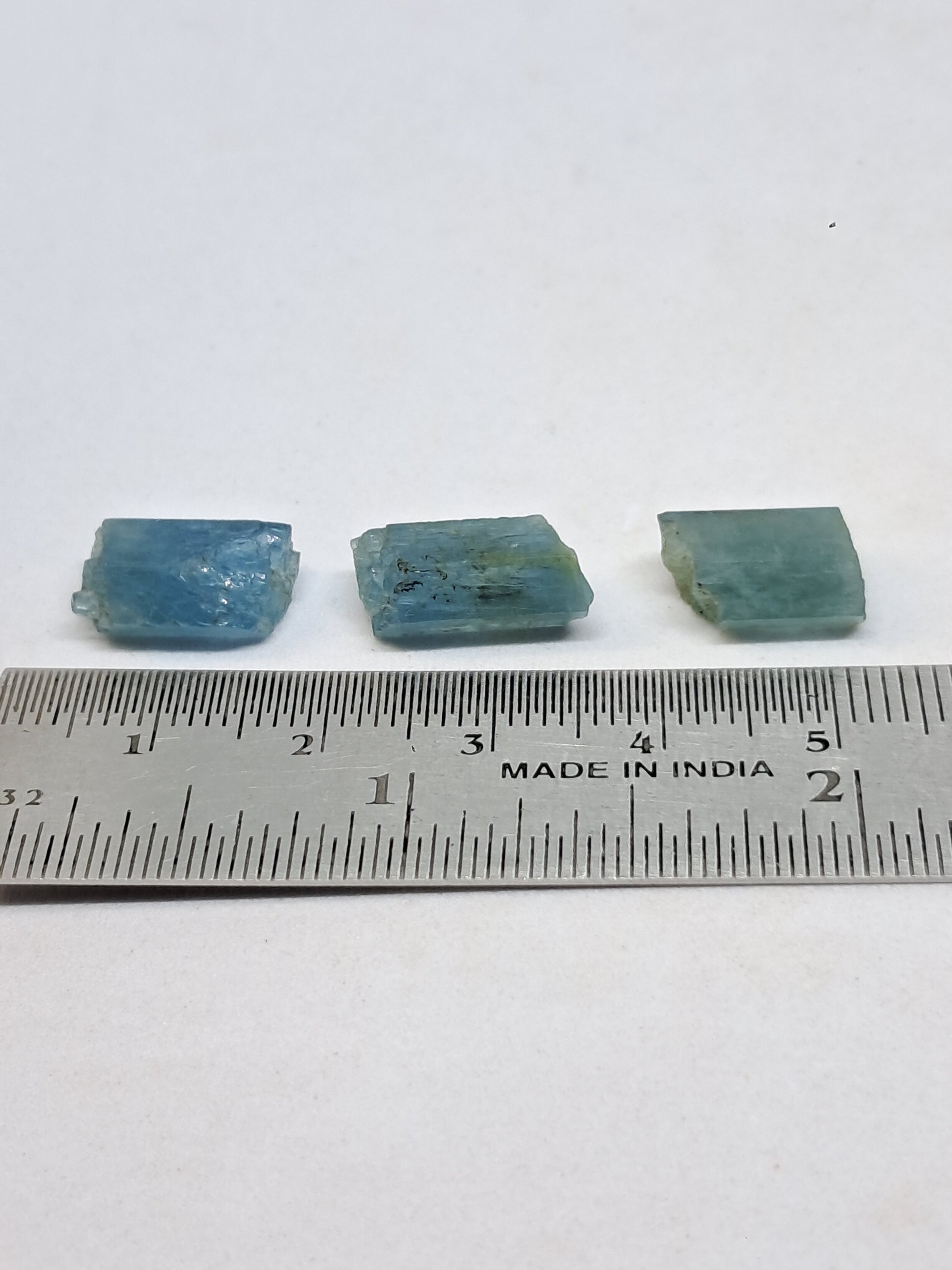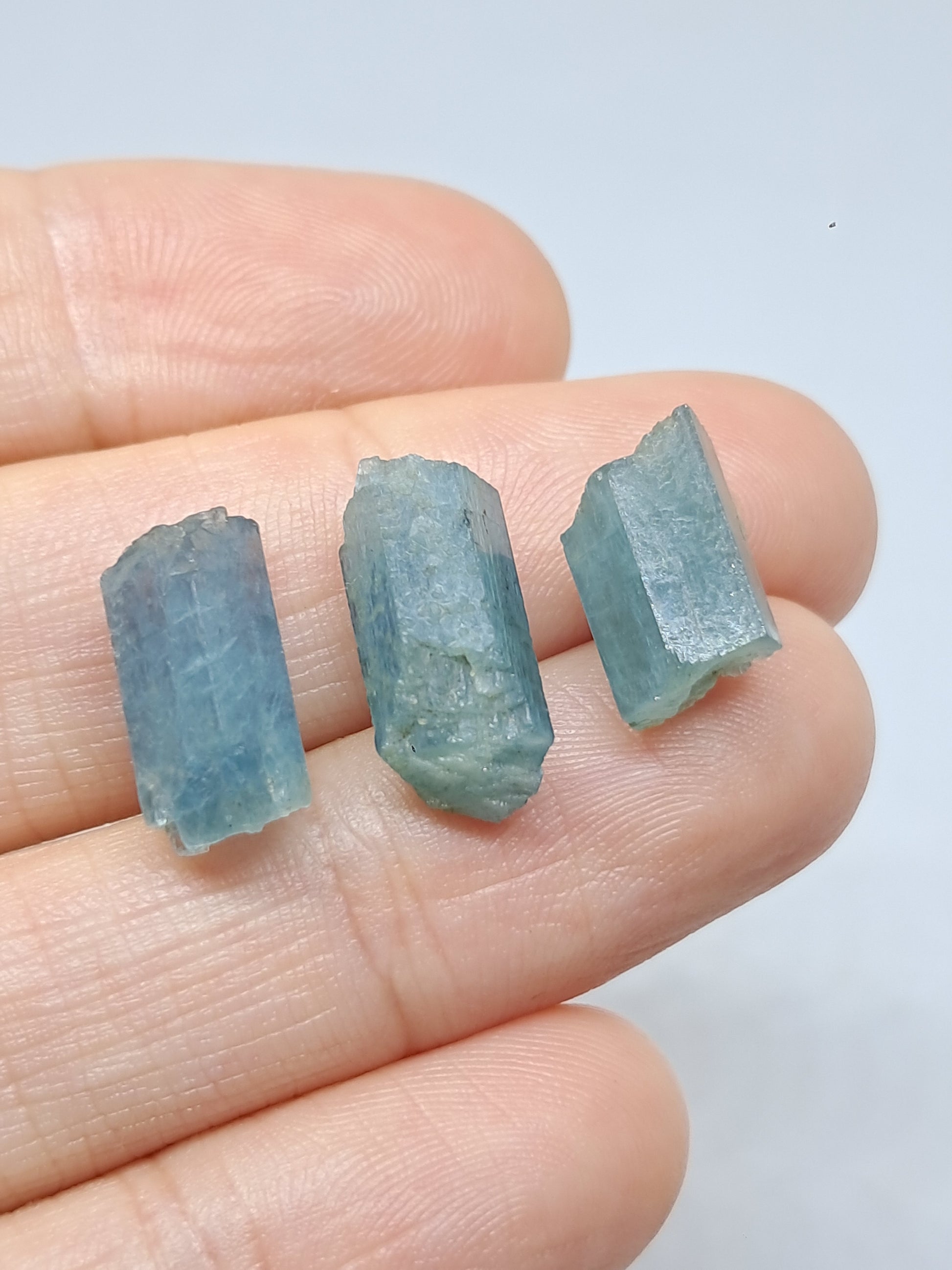 Set of 3 Aquamarines (Karur) Rough Hexagonal Crystals | Mineral Specimen #AQM28