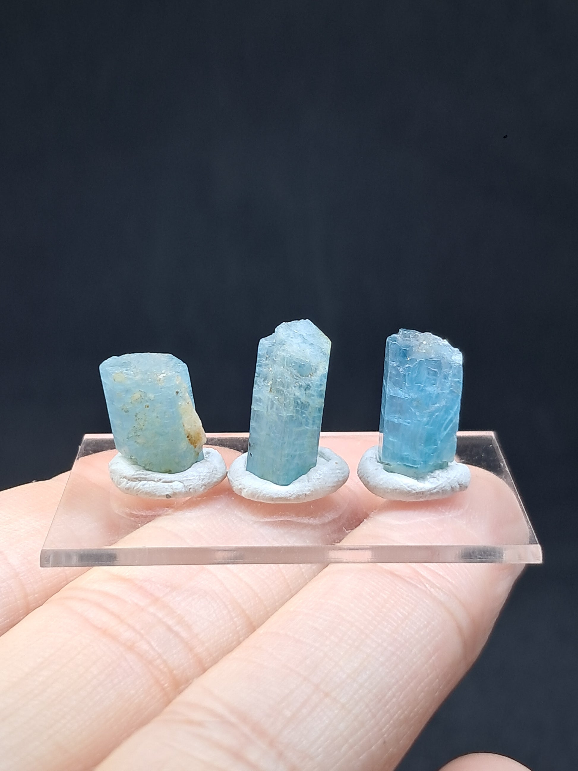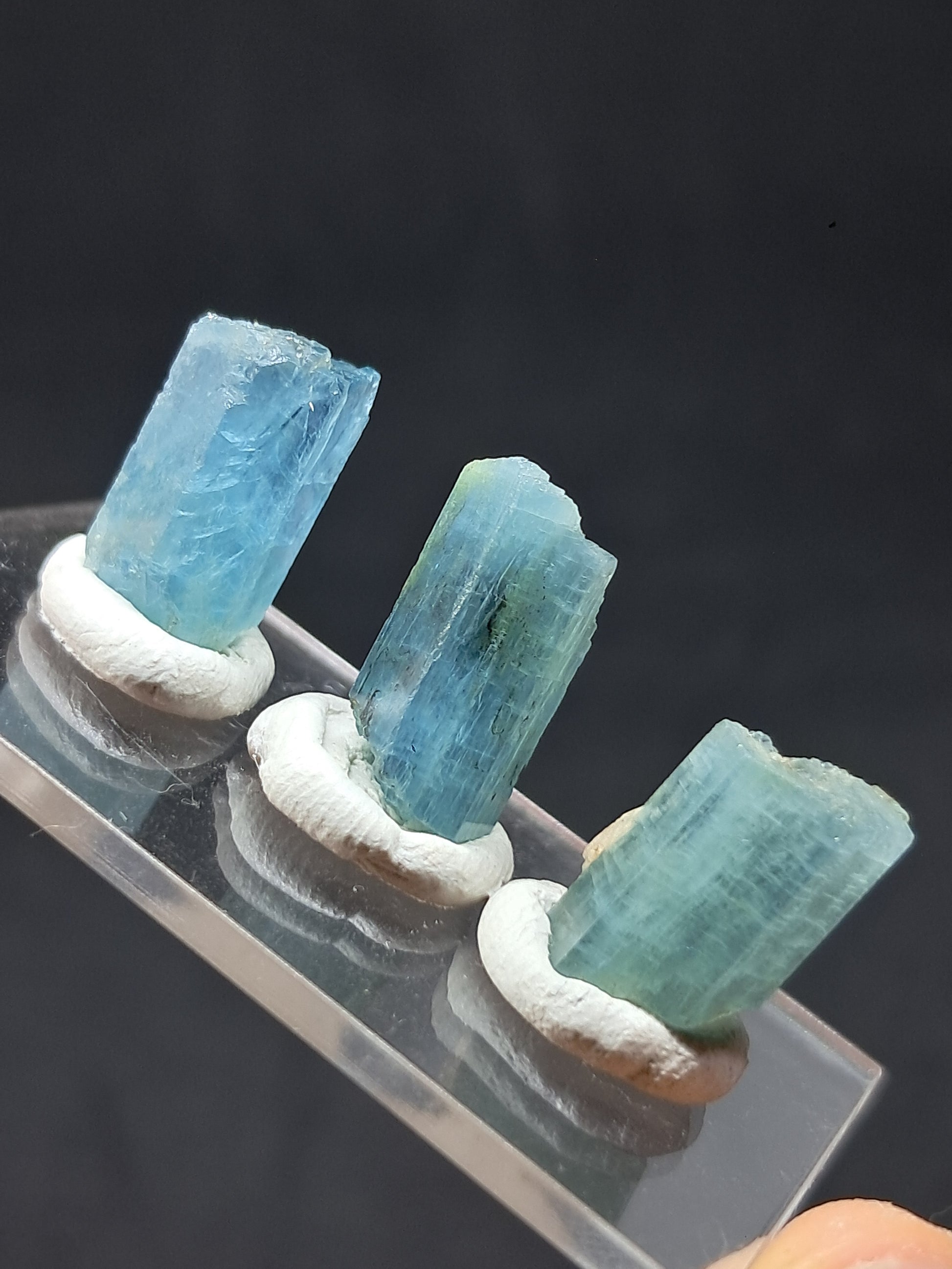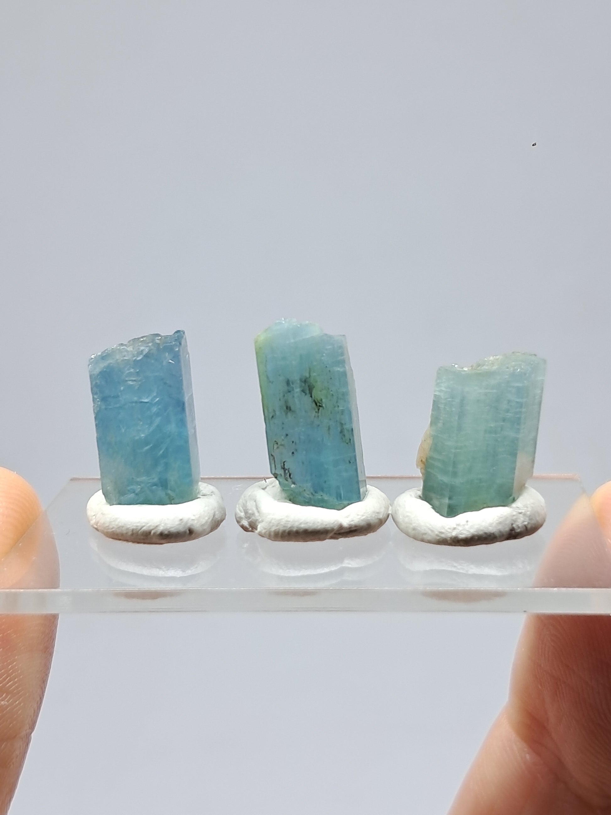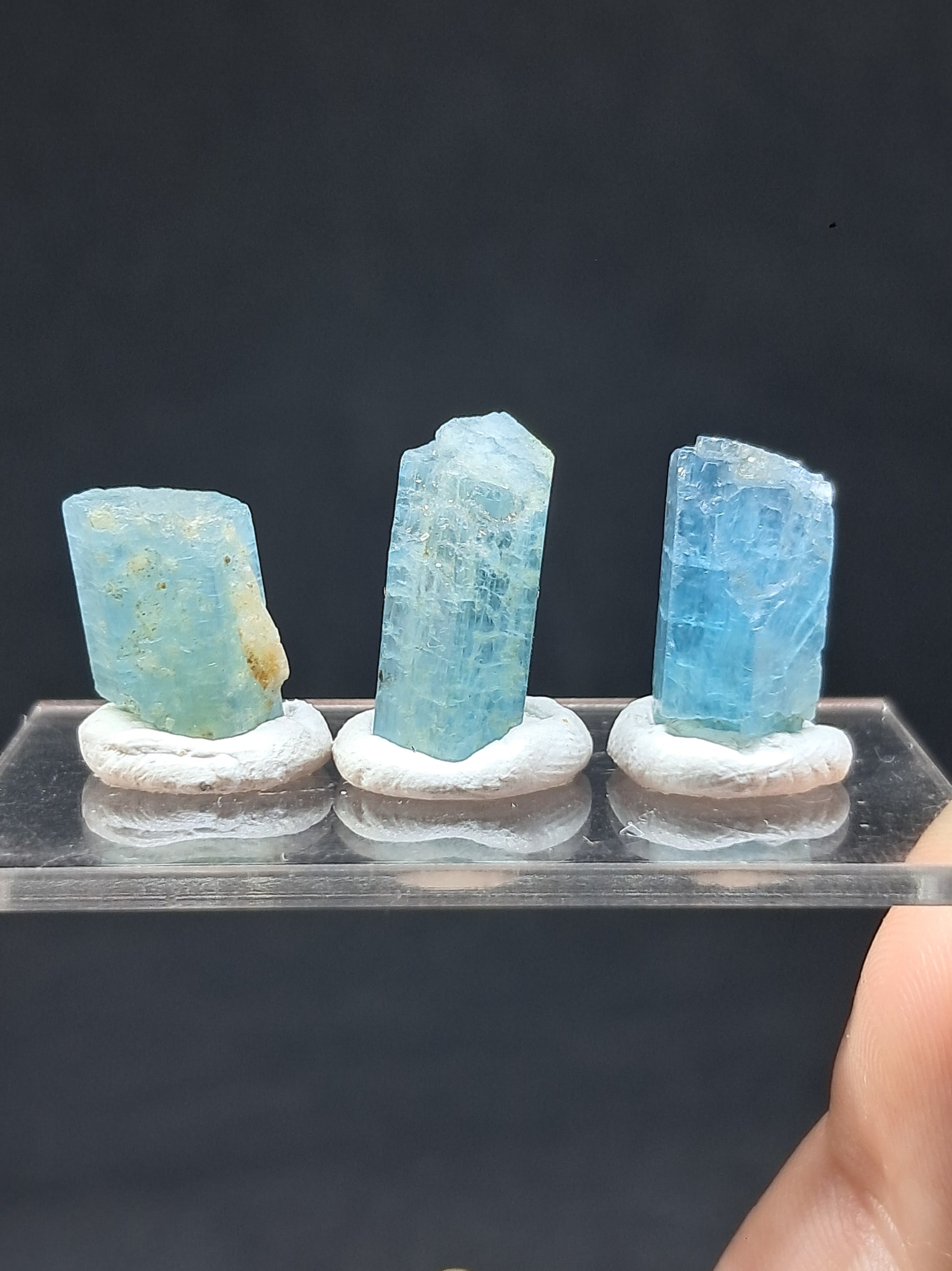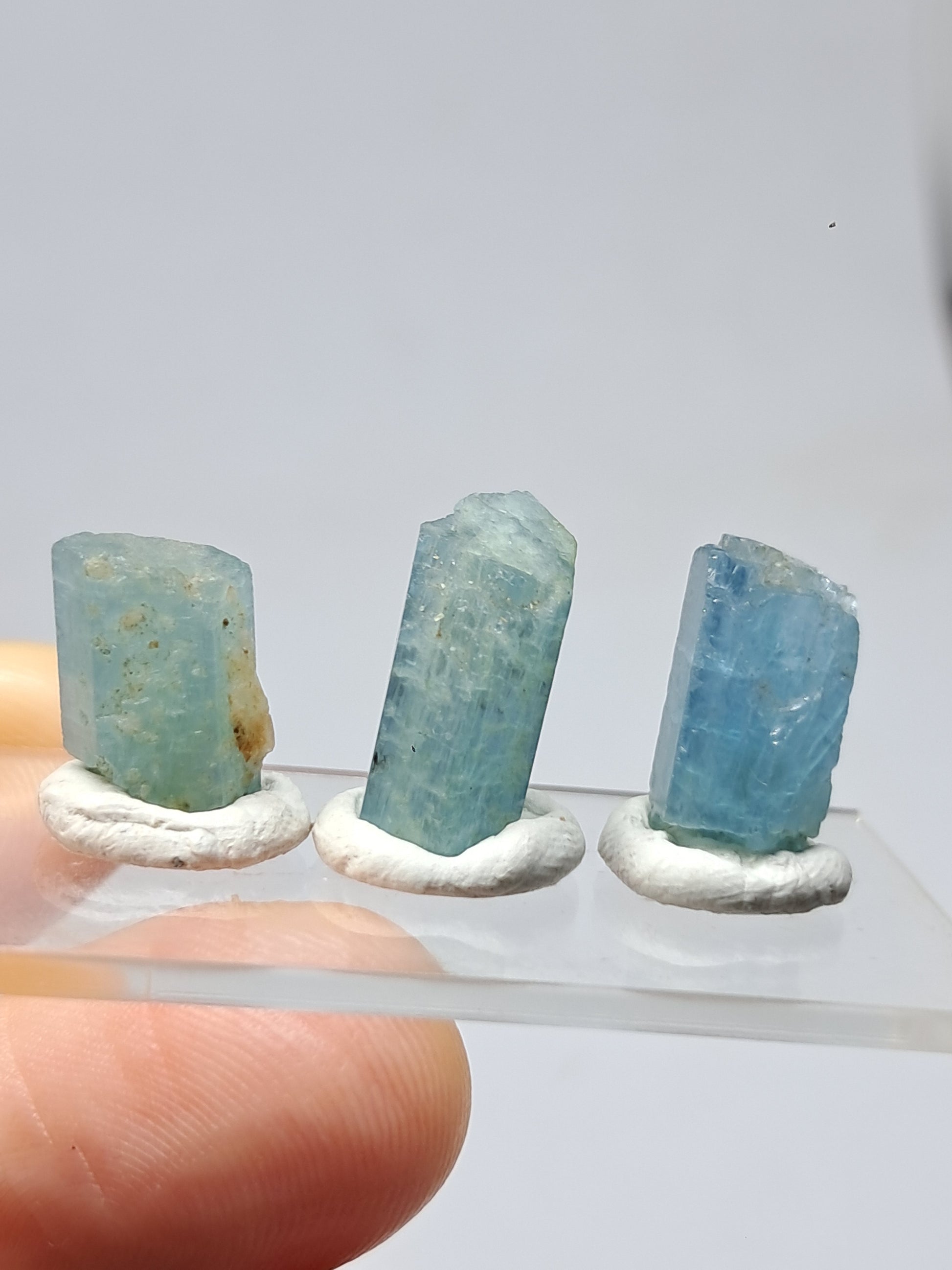 Set of 3 Aquamarines (Karur) Rough Hexagonal Crystals | Mineral Specimen #AQM28