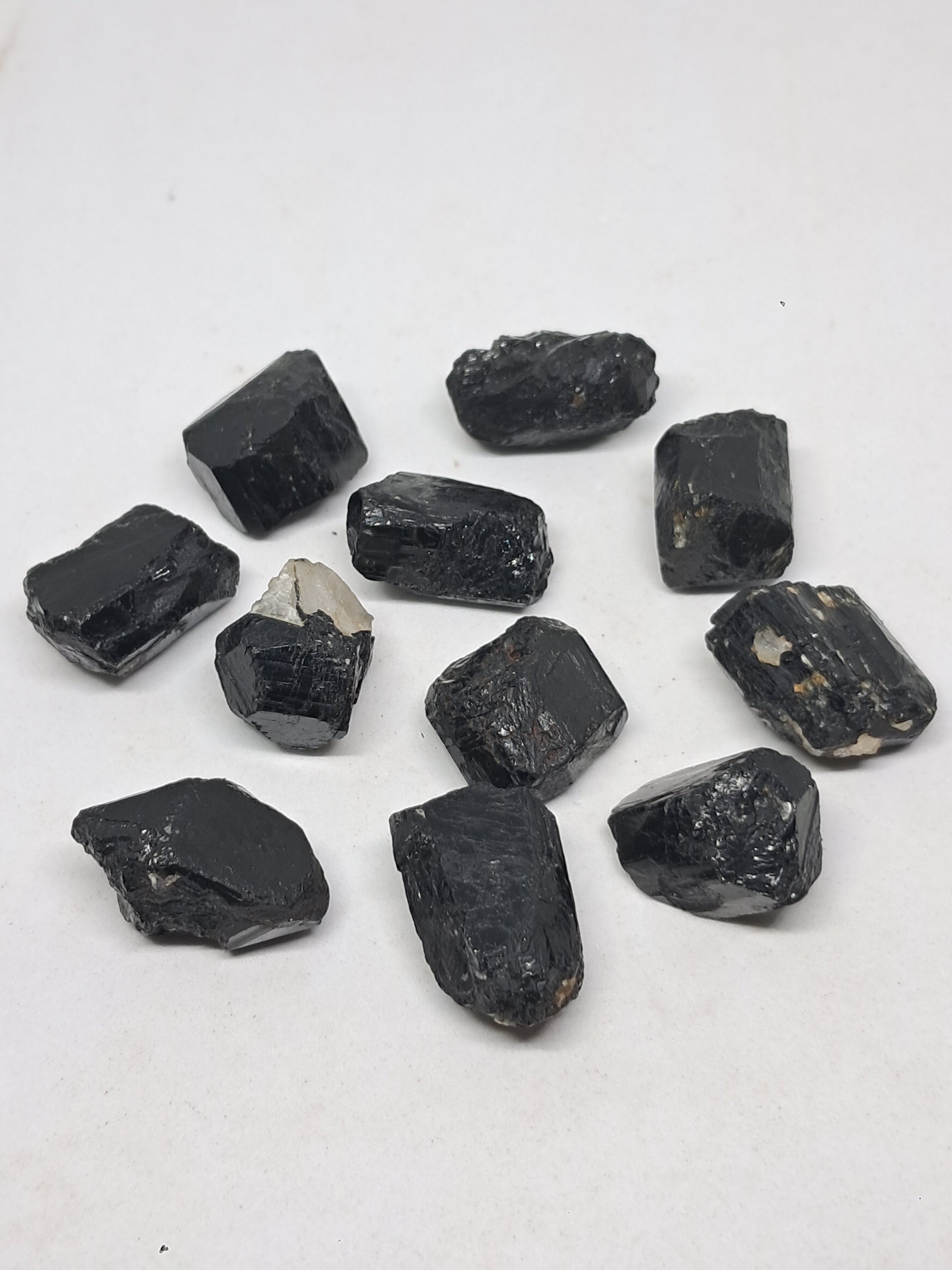 Rough crystals of Black Tourmaline. Some may have natural termination on one side.